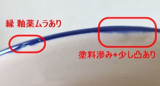 ・縁 釉薬ムラ、塗料滲み+少し凸あり