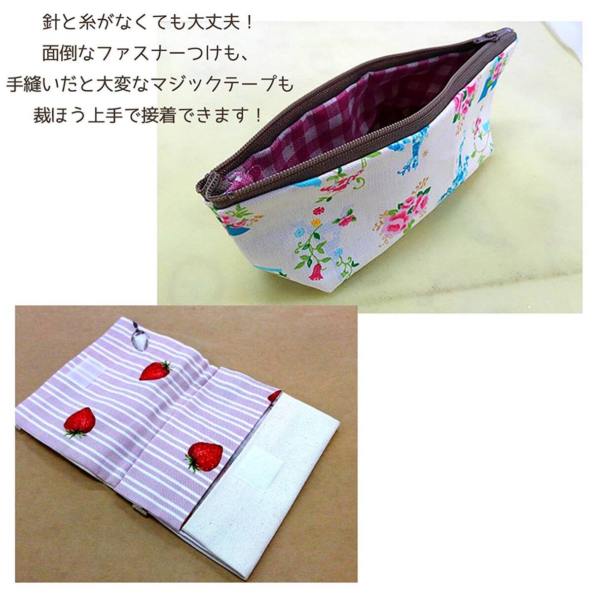 使用用途:ズボン・スカートなどの裾上げ。布同士の接着。ポーチなどの小物製作。