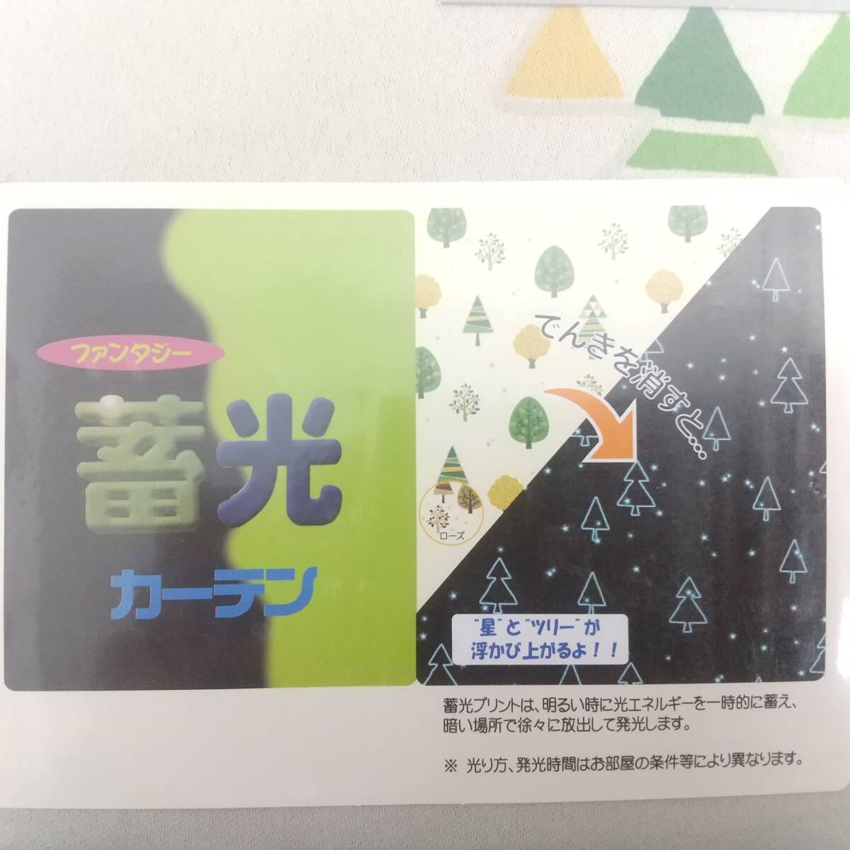 KT07【未使用品 2枚組】ドレープカーテン 100cm×135cm 形状記憶 蓄光カーテン ホワイト系 白 グリーン ツリー 春