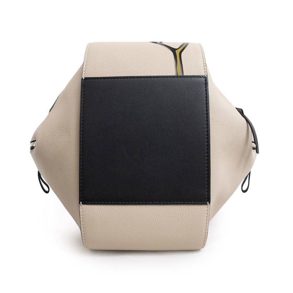 多機能性を重視したフォルムが特徴的なハンモックにカラフルに塗り分けられたハーバリウムの花柄が描かれています。ショルダーバッグやハンドバッグとして持つだけでなく、クロスボディスタイルにして現代的なスタイルと快適さを実現することも可能な革新的なシルエットです。