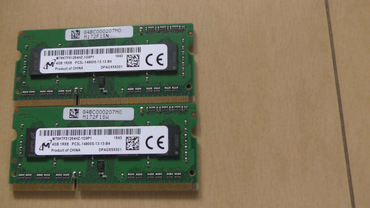 MICRON 1RX8 PC3L-14900S 4GB 2枚 8GB DDR3L ノートパソコン用メモリ DDR3L-13-13-B4 4GB 2枚