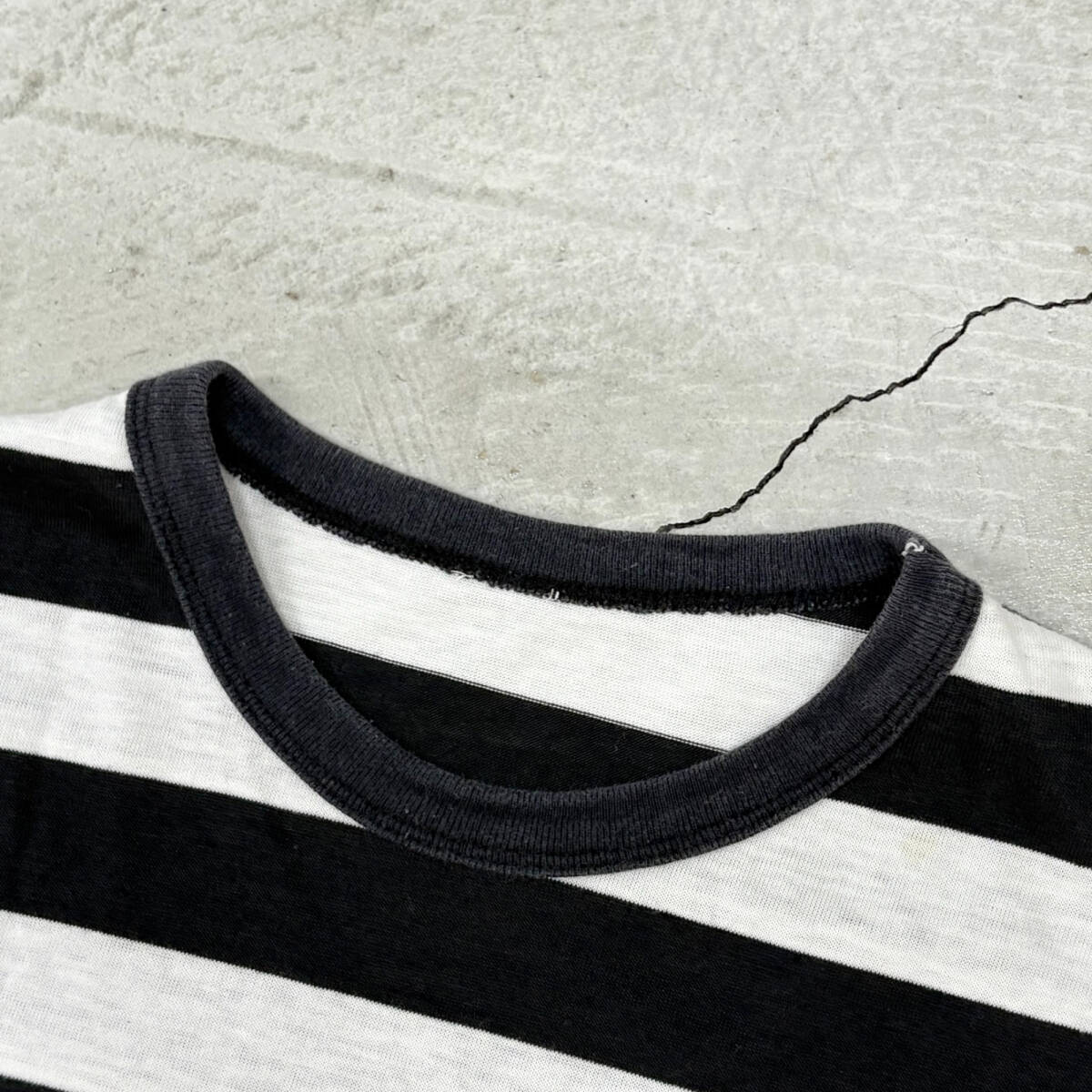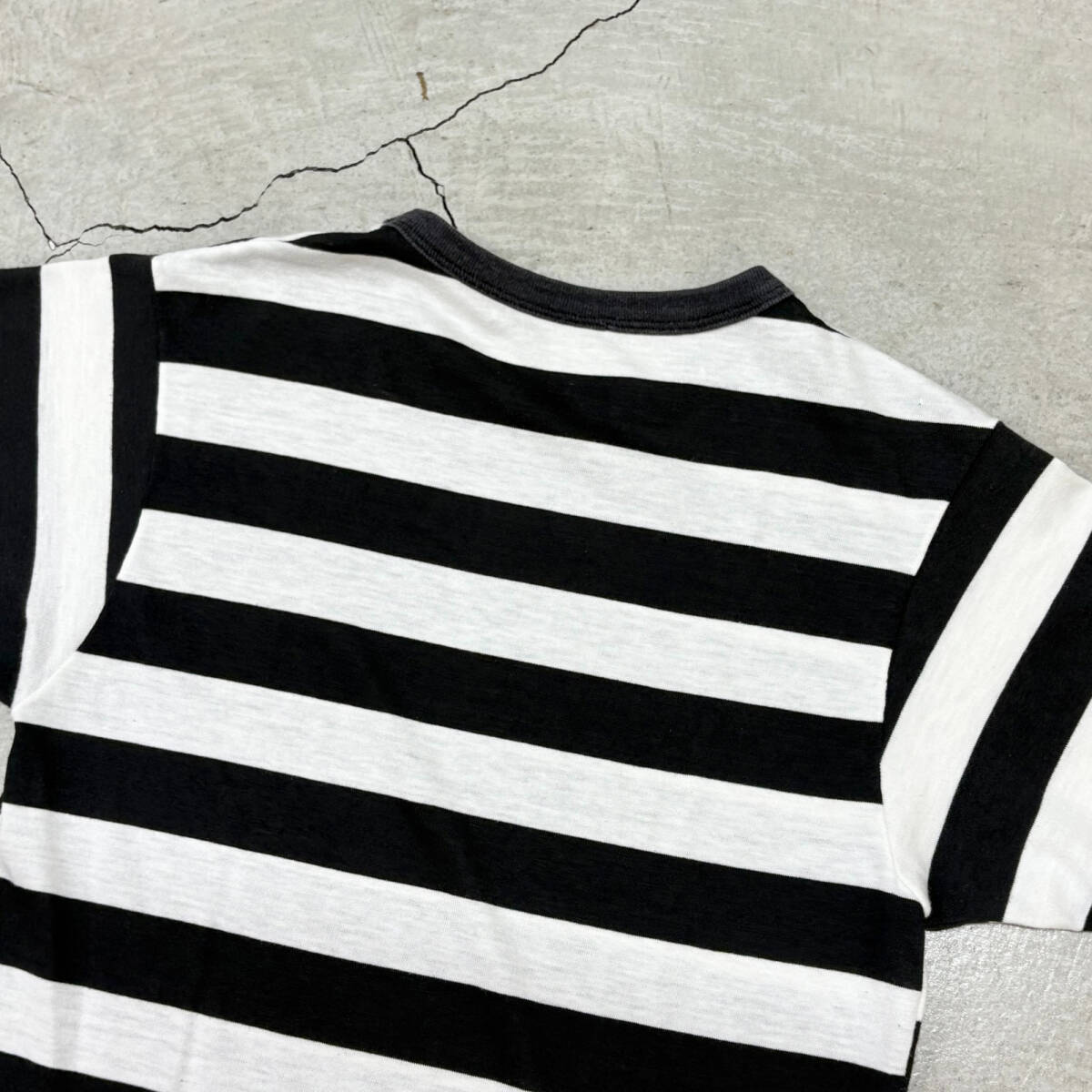 | * 商品説明 * ■ 今回ご紹介するお品は、80s~ALCATRAZ HEALTH CLUB アルカトラズ プリズナー ボーダー Tシャツ /CRになります。 ■ アルカトラズのボーダーTです。80年代以降の物かと思われます。 ■ サイズ 不明 実寸 着丈 約64、5cm、肩幅 約41cm 、身幅(脇下)約44cm、袖丈 約17、5cmになります。 素人寸法ですので、誤差はご了承くださいませ。 ■ 状態 使用感あります。身頃に薄汚れがあります。神経質な方はご入札をお控えください。画像参照。 | ||||||||