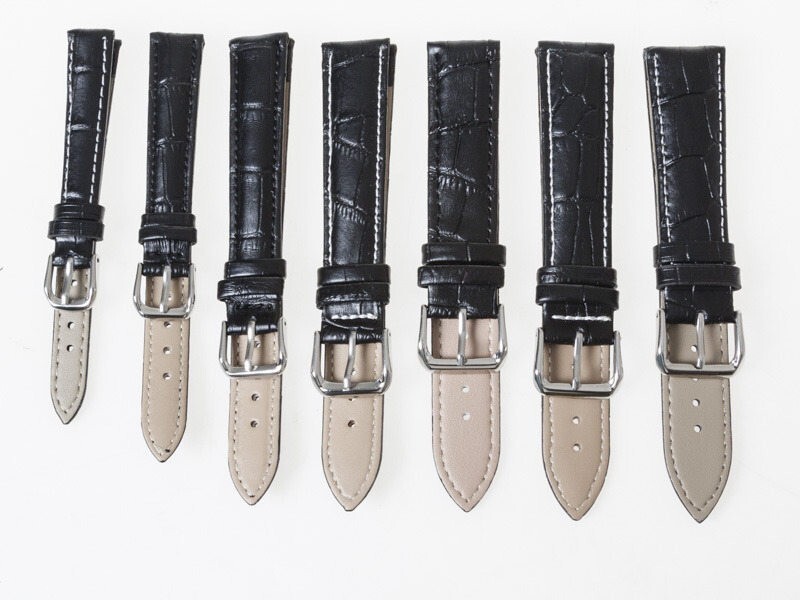 汎用タイプ、腕時計19MM用のワニ革風仕上げの本革バンドストラップです。
