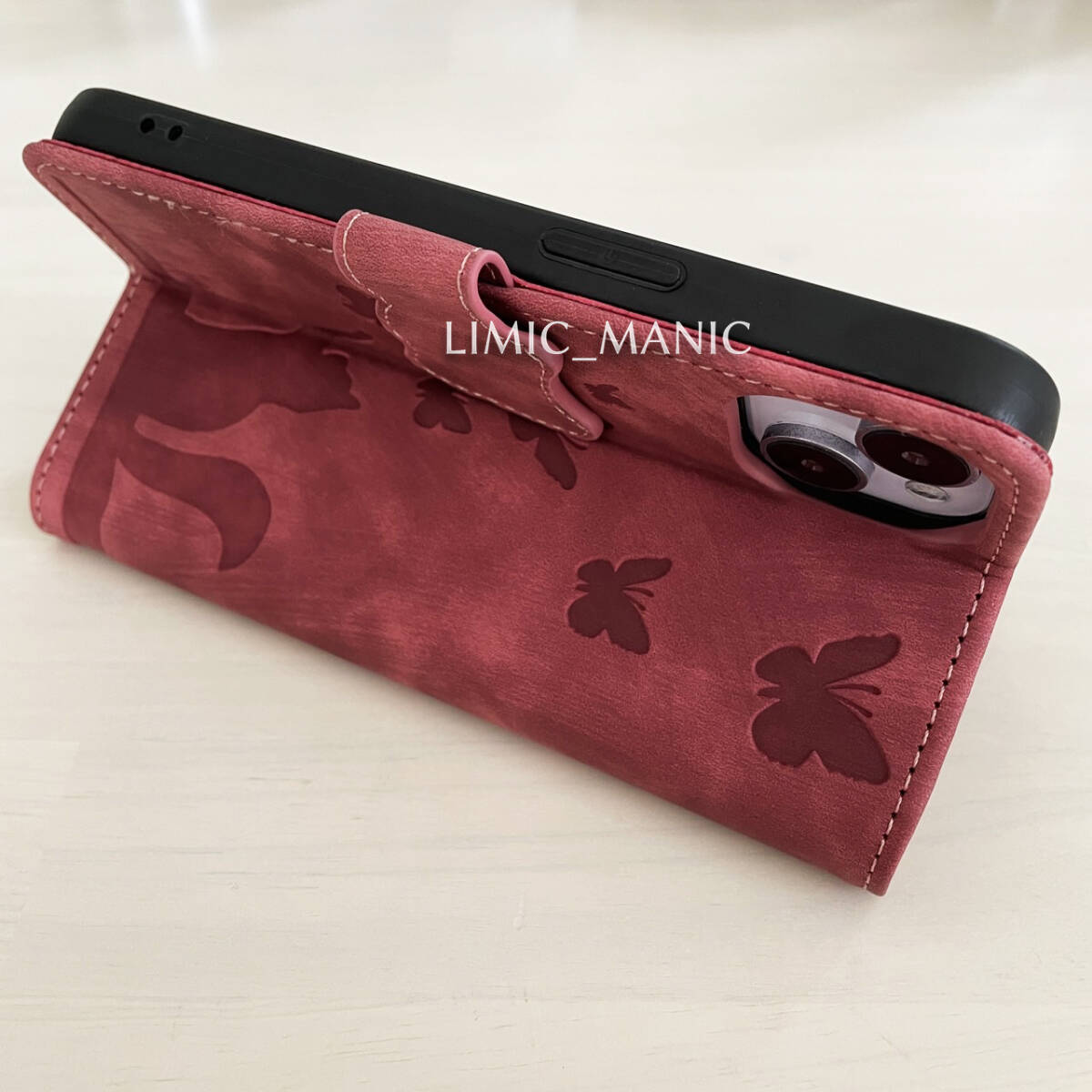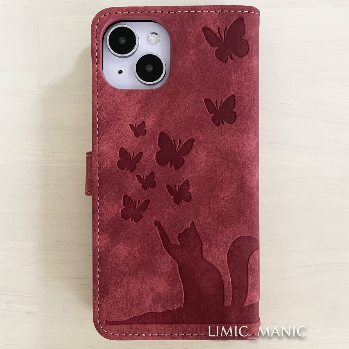 かわいい猫や蝶のシルエットをエンボス加工した iPhone ケースです。