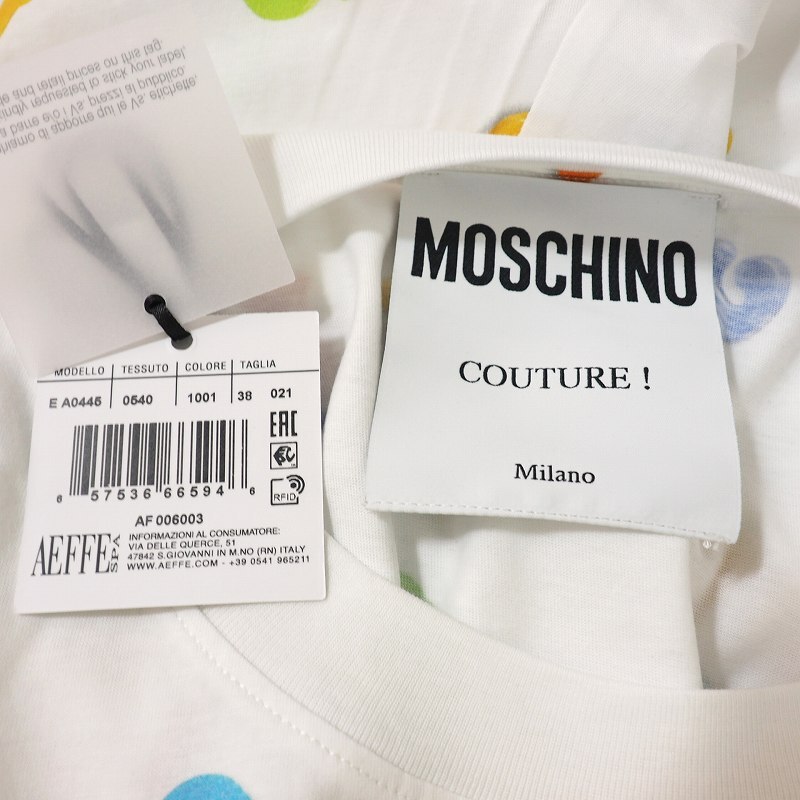 未使用品 モスキーノ MOSCHINO 20SS ダブルクエスチョン プリント ワンピース Tシャツ カットソー 総柄 38 ホワイト 白 A0445 レディース