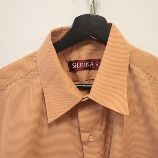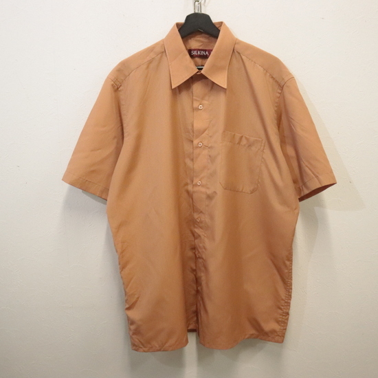 J770 90sビンテージ SILKINA 半袖シャツ■1990年代製 約XLサイズ オレンジ ストライプ 古着 アメカジ ストリート 80s 70s 60s 激安 古着卸