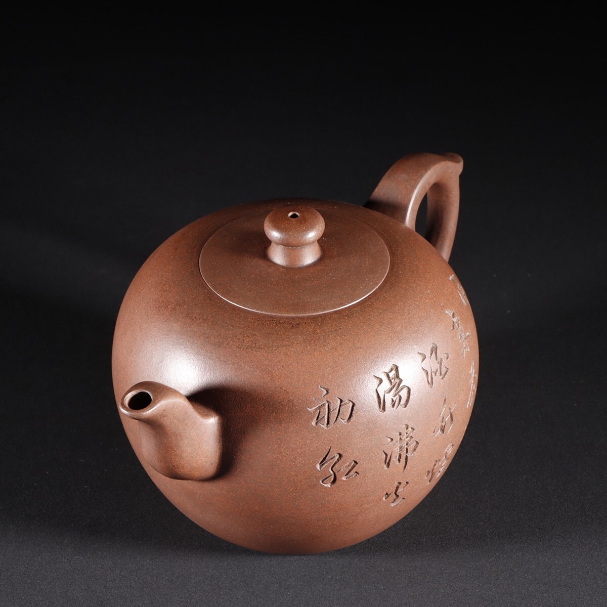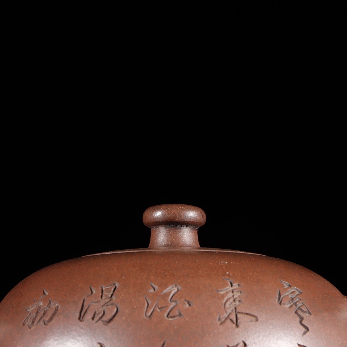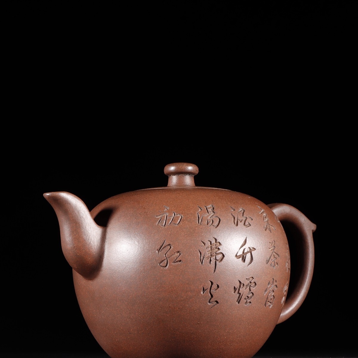 【瓏】紫砂彫 詩文一粒珠茶壺 邵茂林銘 清時代 中国陶磁器 陶芸 後手急須 茶壷 茶道具 置物 古美術 蔵出