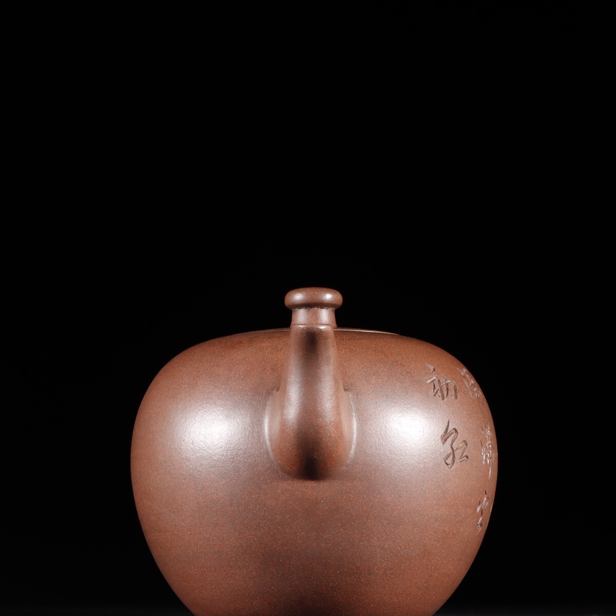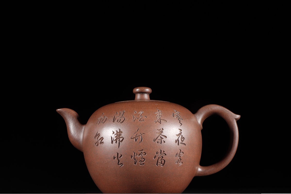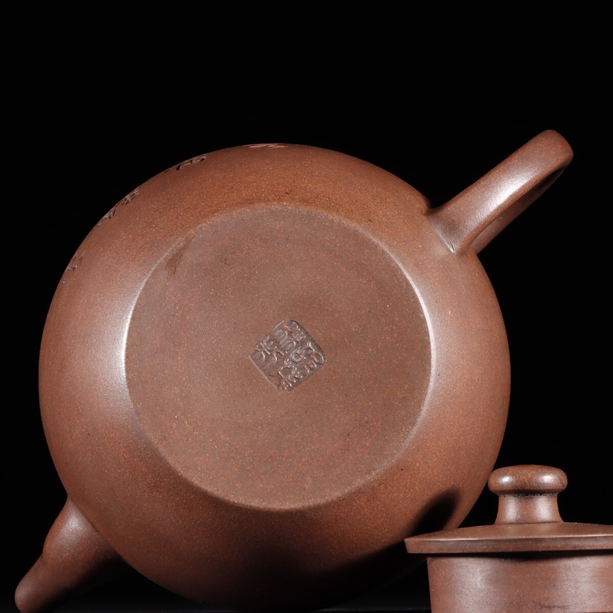 【瓏】紫砂彫 詩文一粒珠茶壺 邵茂林銘 清時代 中国陶磁器 陶芸 後手急須 茶壷 茶道具 置物 古美術 蔵出