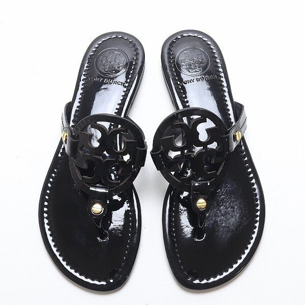 【FA425】◆TORY BURCH トリーバーチ エナメル ロゴモチーフ トング サンダル 黒 ブラック 6 | |