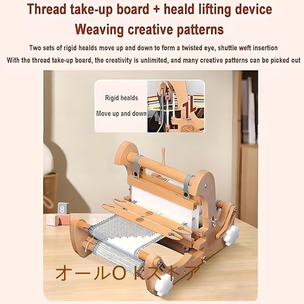 デスクトップ木製織り機、DIY手編み織り機、織りフレーム織機キット、4種類のリジッドヘドル付き、最大織り幅20cm、初心者、クラフトアー