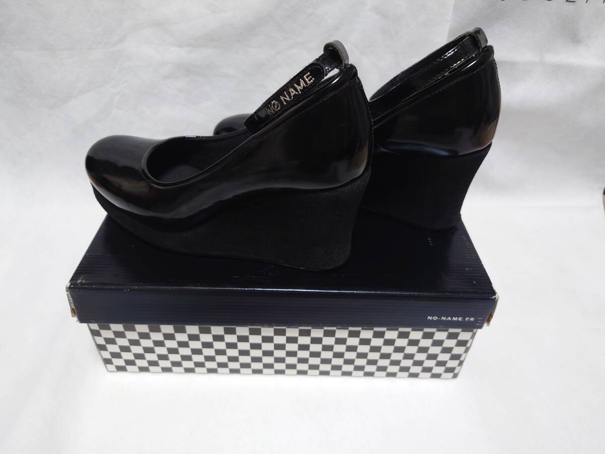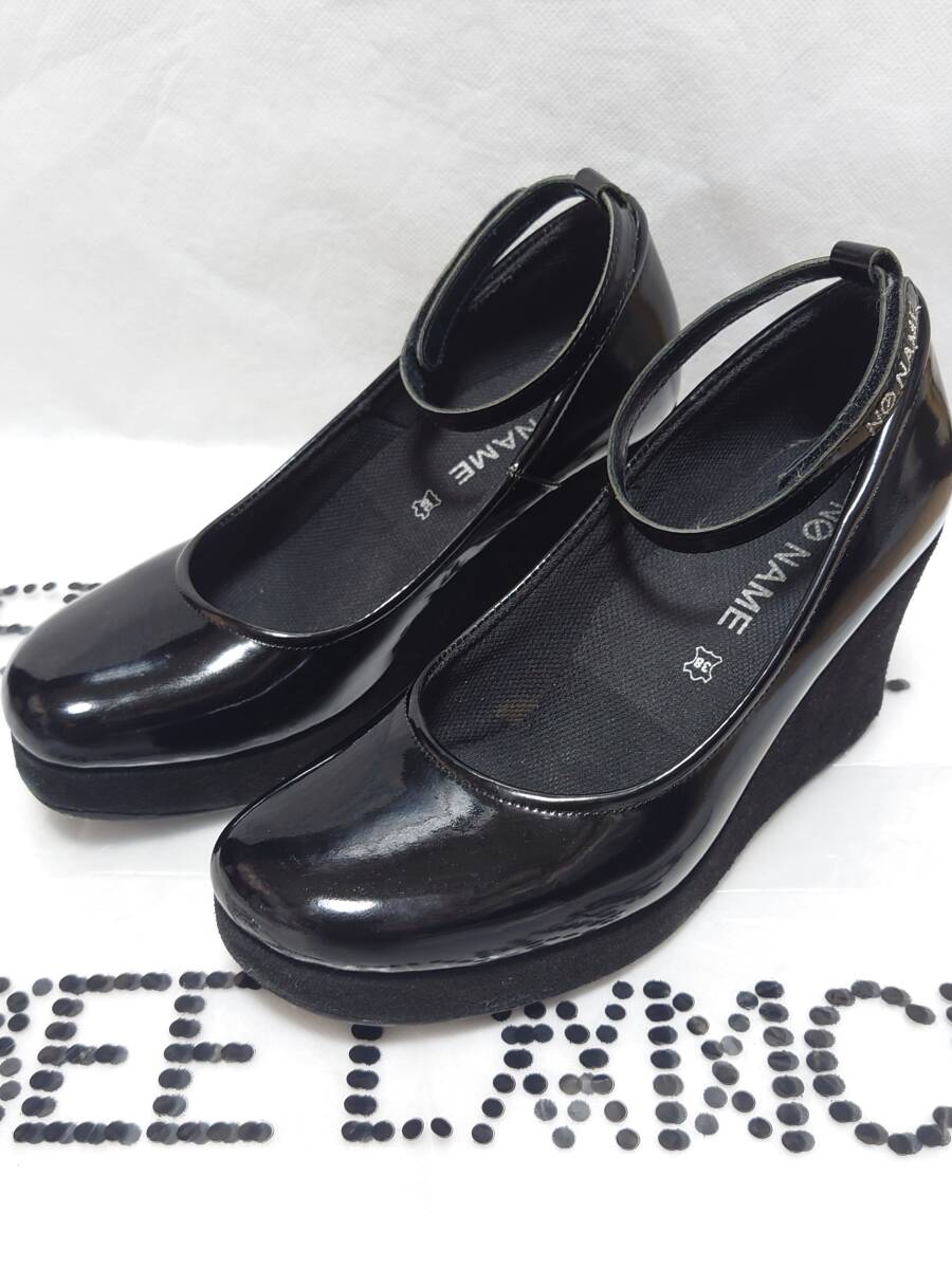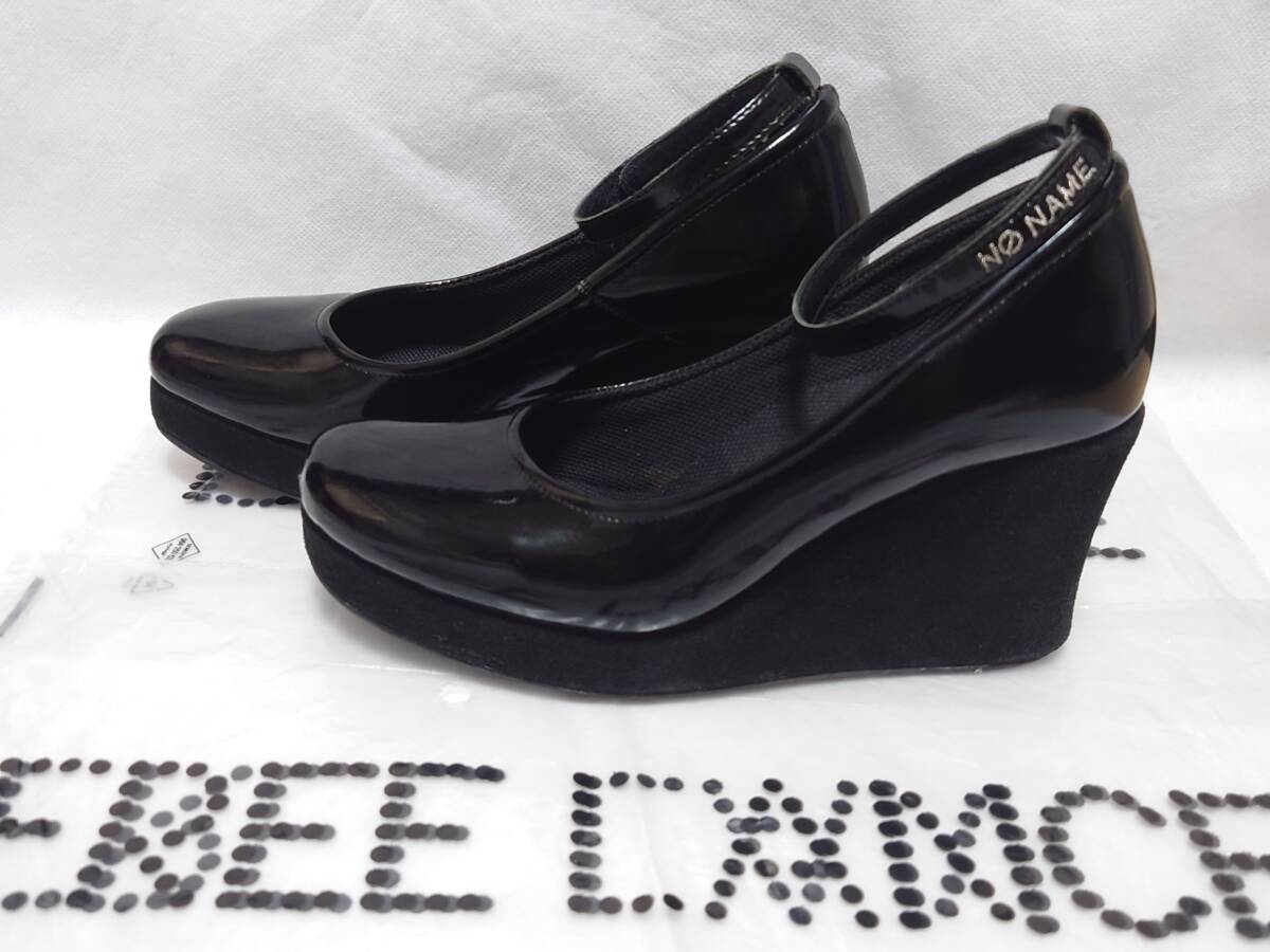 NO NAME ノーネーム エナメル スエード ウエッジソールパンプス 黒 38 美品