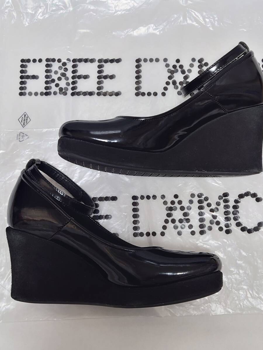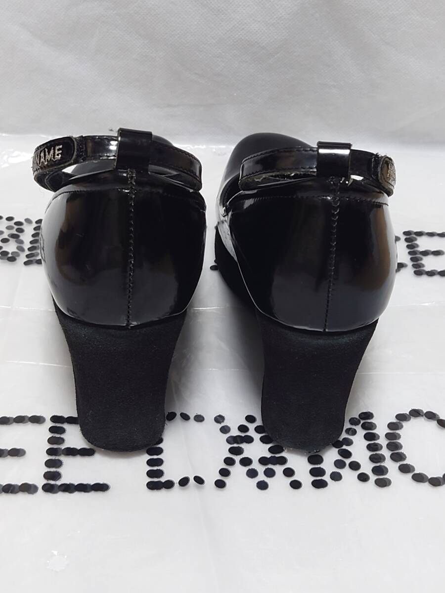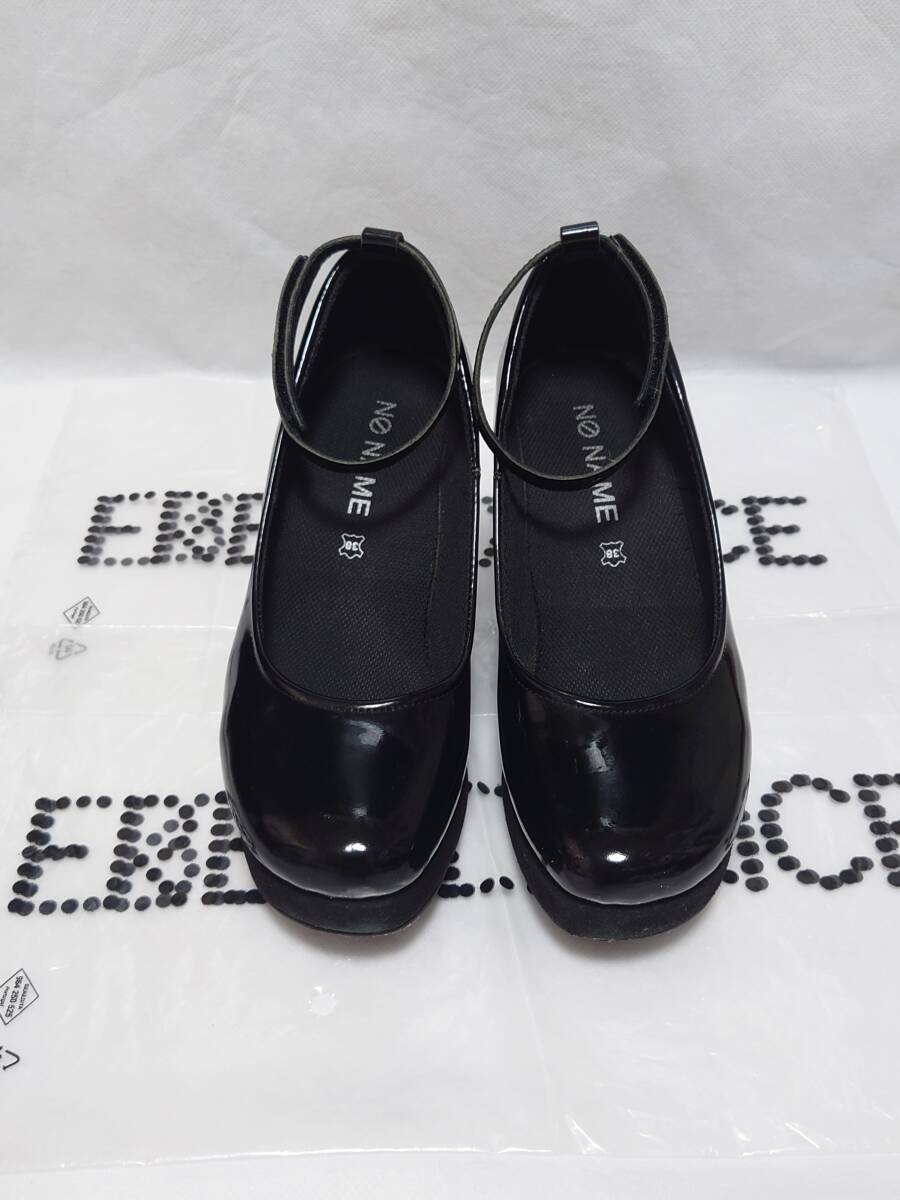 NO NAME ノーネーム エナメル スエード ウエッジソールパンプス 黒 38 美品