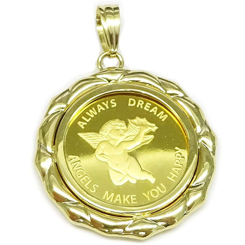 312536◆金貨:PT999.9 2.5g◆YOUR AEGEL IS WITH YOU◆本体:縦横幅約 29.3mm26.0mm◆バチカン:縦約8.2mm奥行約4.5mm◆重量:約6.62g (強化ガラス入り)※チェーンネックレスは付属いたしておりません。ペンダント用のネックレス多数出品中です。☆☆☆=おすすめポイント♪☆☆☆ALWAYS DREAM ANGEL MAKE YOU HAPPYスイス・パンプ社発行の、素敵な図柄の金貨ペンダントTOPです。純金999.9エンゼル金貨を18金枠のふっくらボリューム枠に納めた素敵なコインジュエリーです。両面楽しんでいただけるリバーシブルで、強化ガラスを両面に加工した完璧な作り!画面上と実物では、多少色目が異なって見える場合がございますので、予めご了承ください。SMILE! YOUR AEGEL IS WITH YOUSUISSE・FINEGOLD 2.5