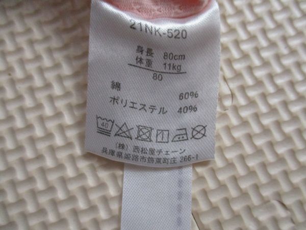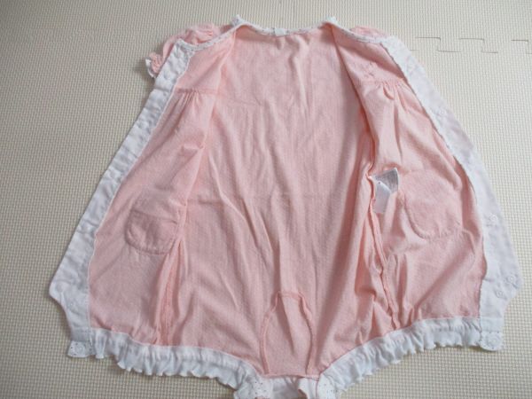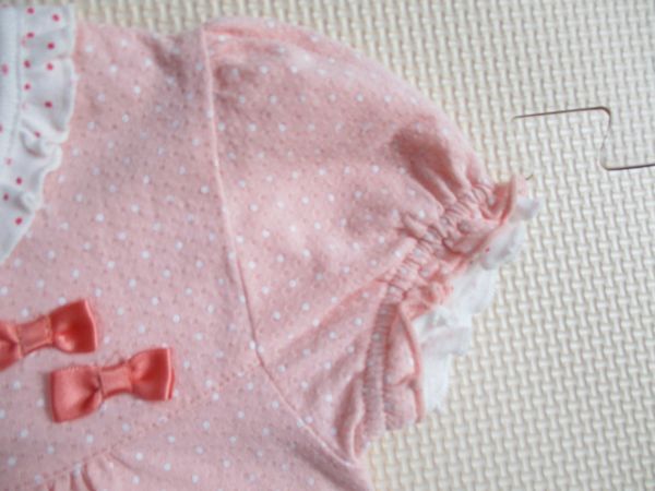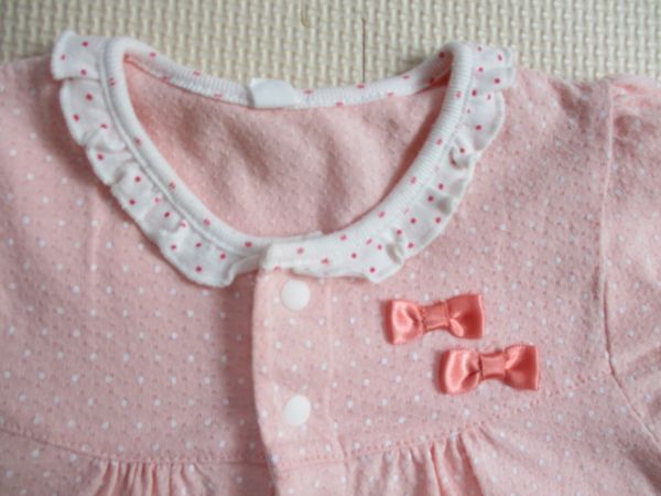 | BG596【(株)西松屋チェーン】リボン・フリル付き ドット模様 半袖 ショートオール ロンパス 女児 淡赤 80 | |