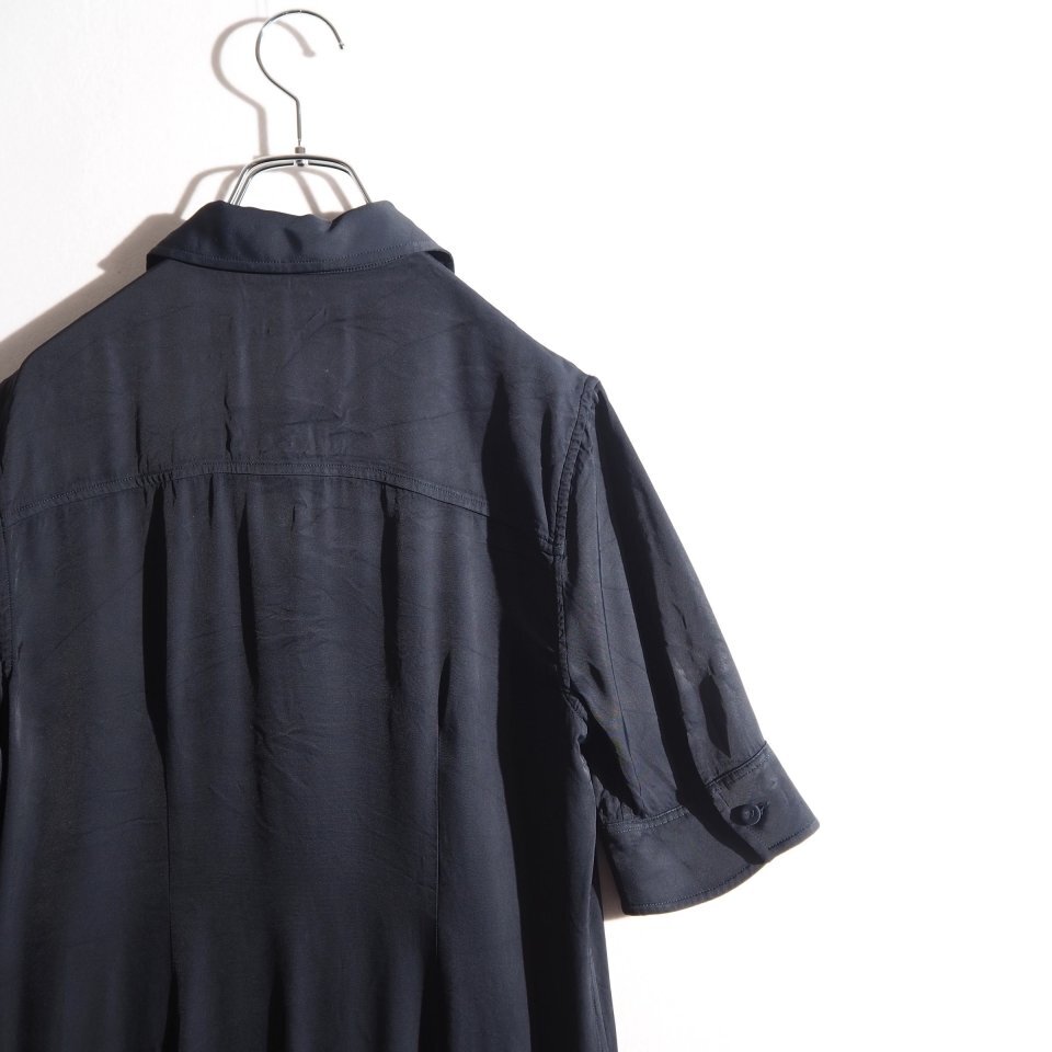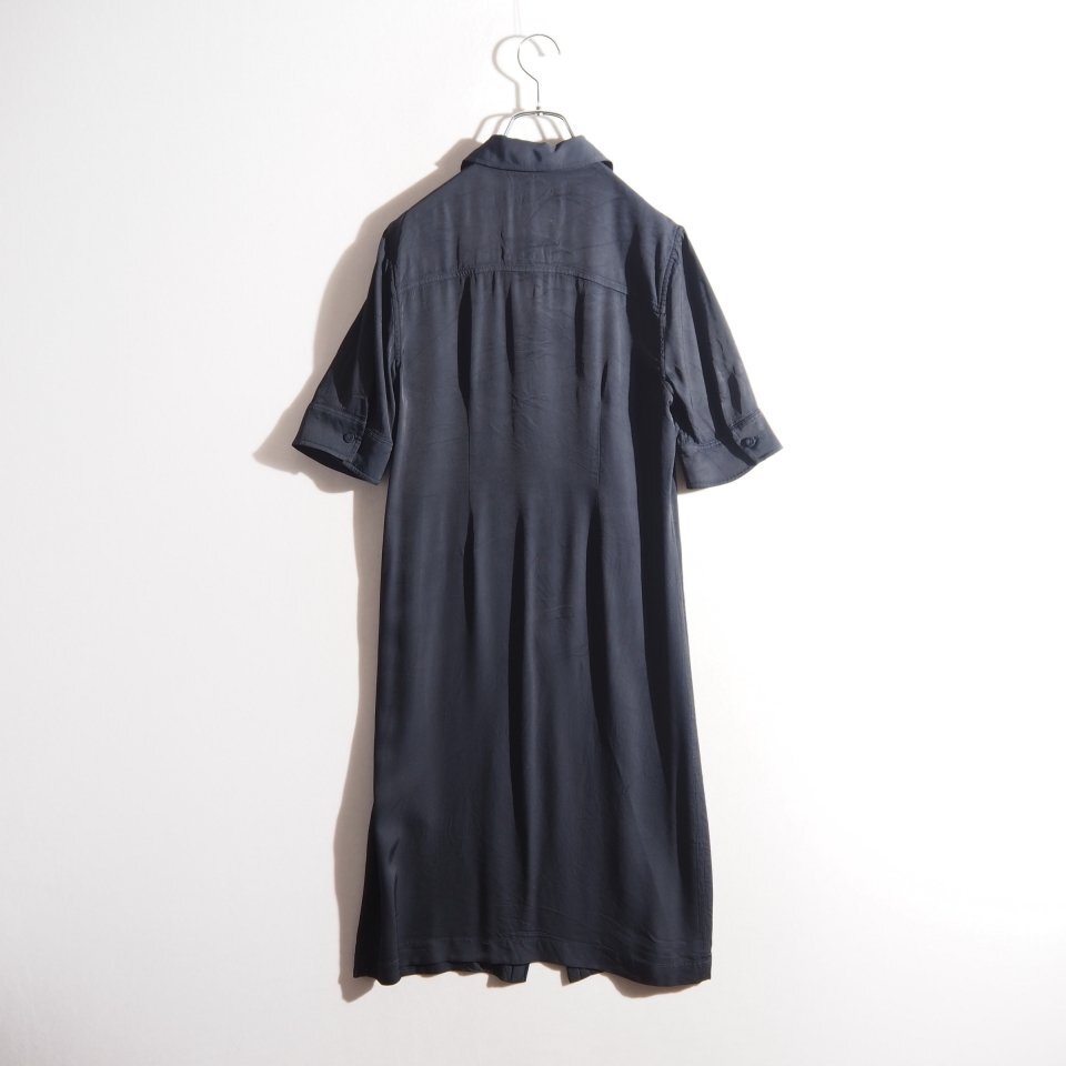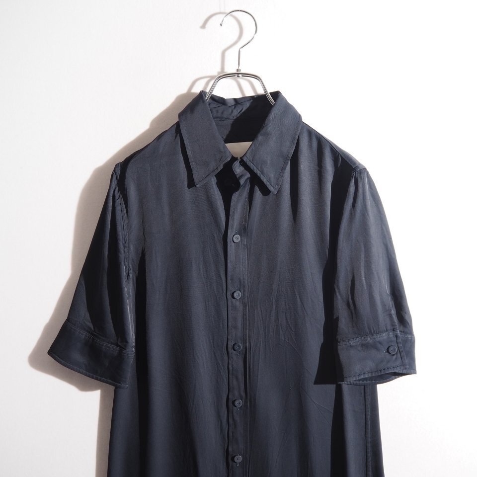 23SS サテン ショートスリーブ シャツワンピース ダークネイビー 34