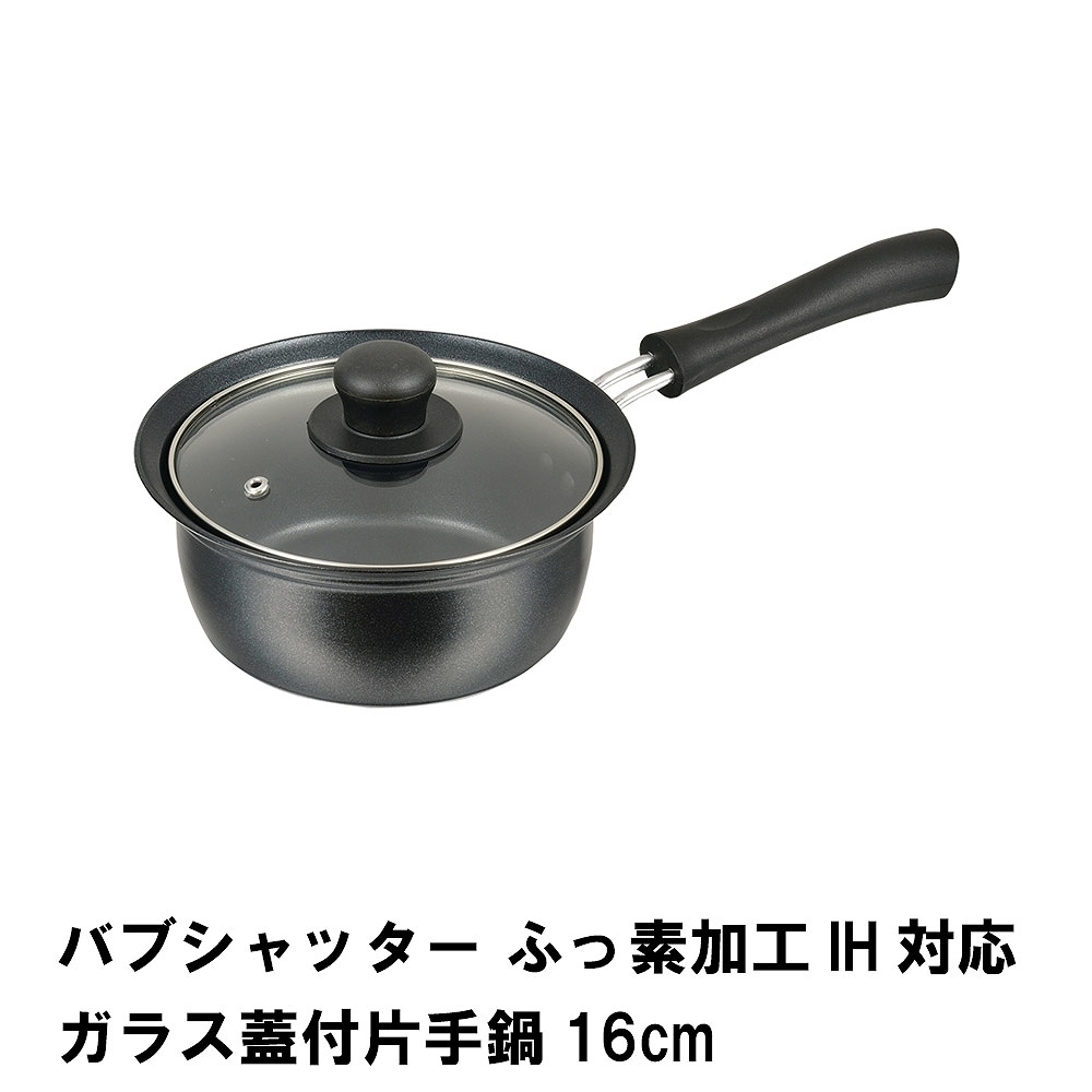 商品名 | バブシャッター ふっ素加工IH対応ガラス蓋付片手鍋16cm M5-MGKPJ02297 |