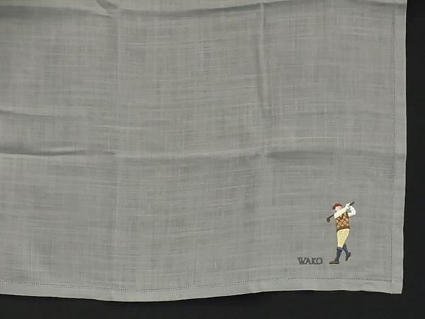 ■新品■未使用■ WAKO 和光 ワコー コットン50%×リネン50% ゴルフ ハンカチーフ ポケットチーフ メンズ グレー系 DF2178