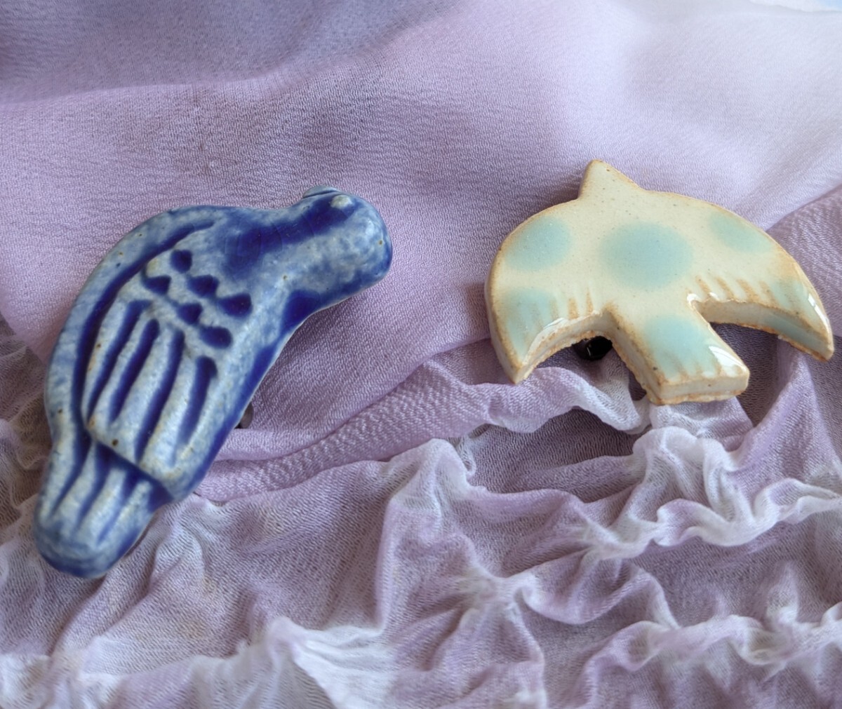 リメイク、ハンドメイドの帯留め2個の出品です。