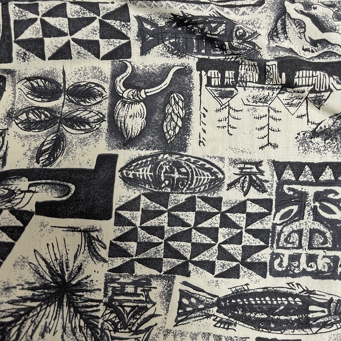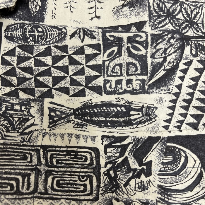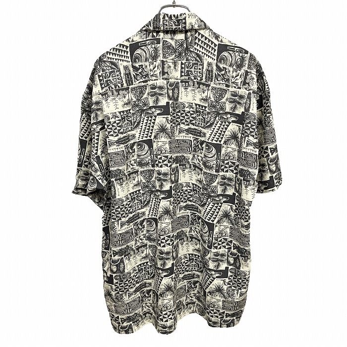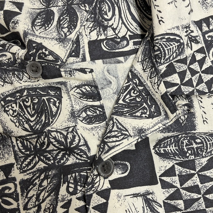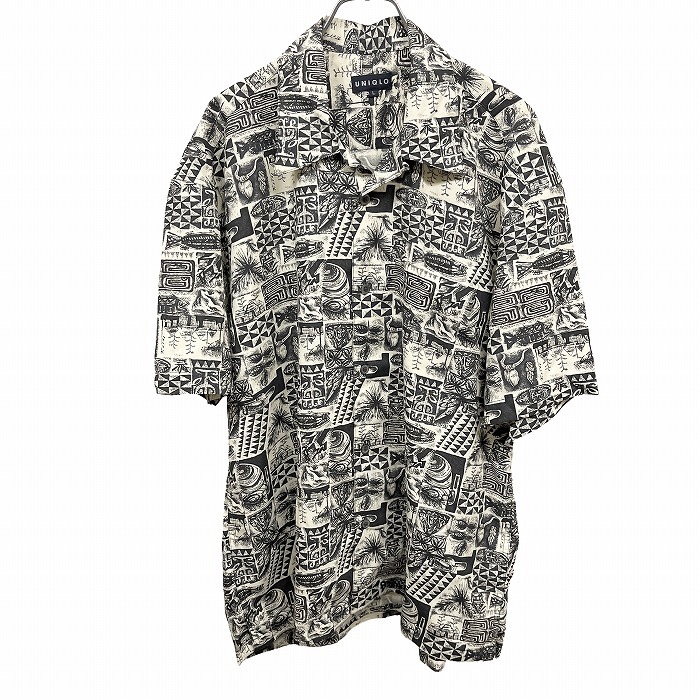| 商品タイトル | ユニクロ UNIQLO アロハシャツ 総柄 民族柄 開襟 胸ポケット 半袖 ボックスカット レーヨン100% L アイボリー 生成り色×黒 メンズ |
