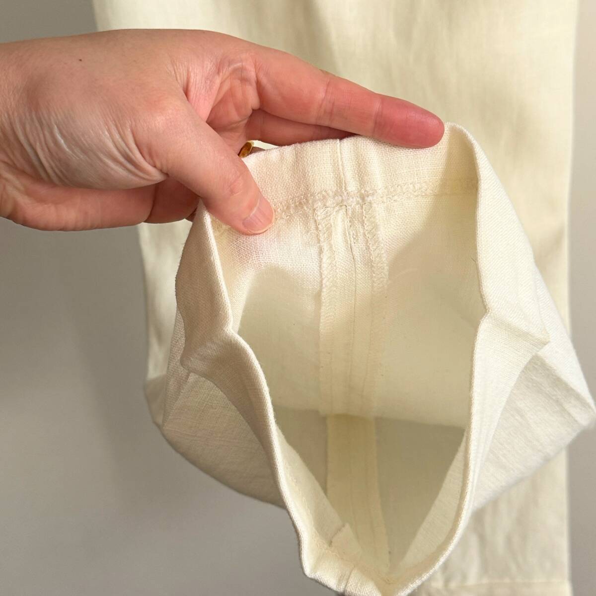 ゆとりのある腰回りから裾にかけて緩やかなテーパードライン。