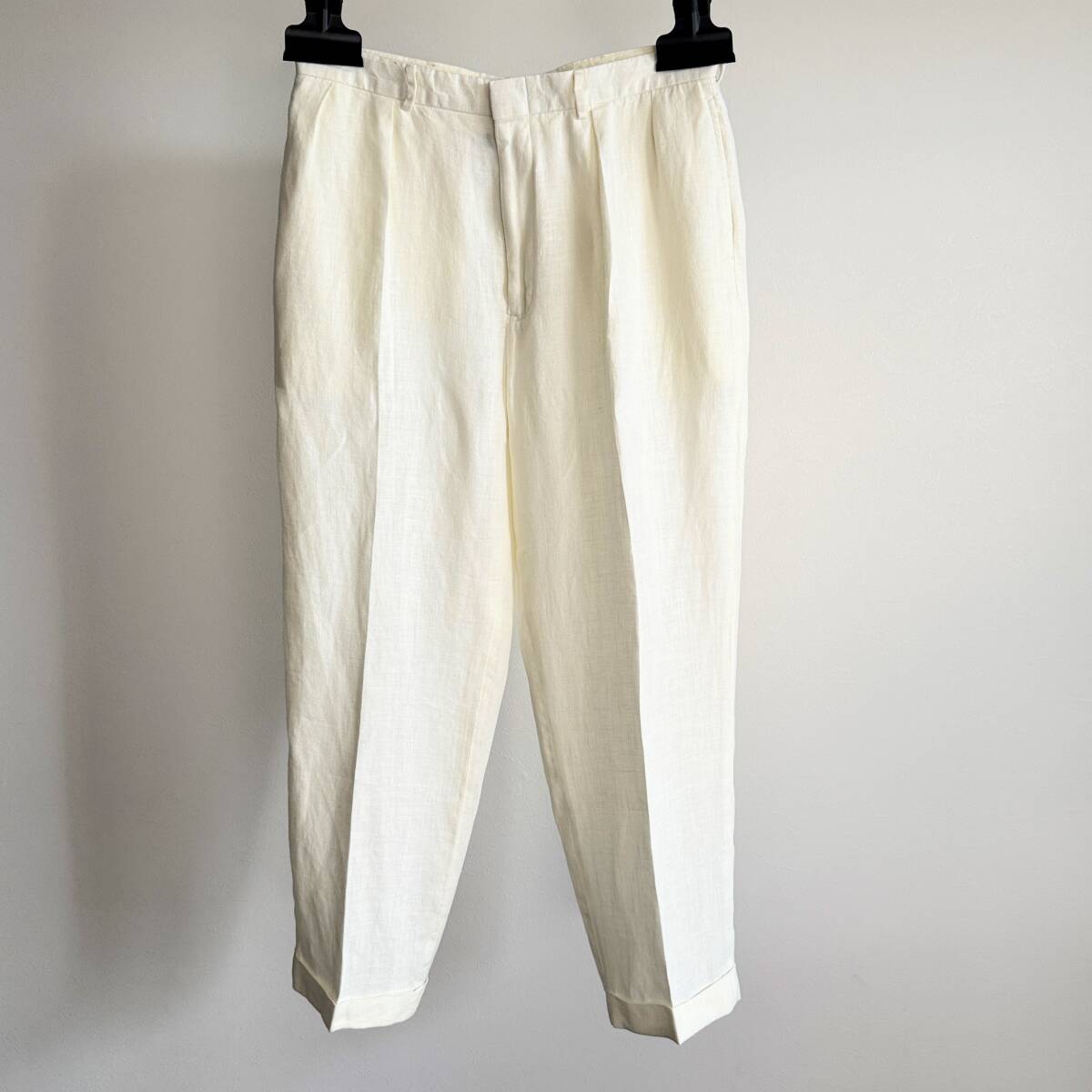 希少《 Mint Condition / Linen100% / W35 L30 》90s 極上品【 Ralph Lauren 生成り 麻 リネン 100% スラックス ビンテージ 】