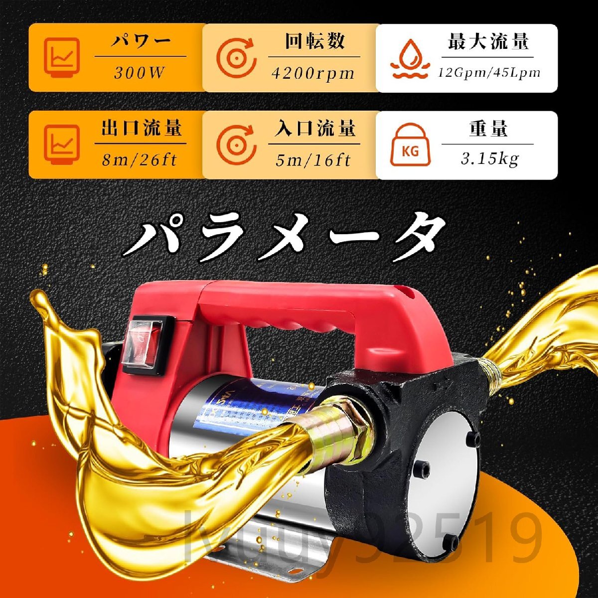 電動オイルチェンジャー オイルポンプ 45L/min 300W オイル交換 ポンプ 上抜き 給油ポンプ 軽量 高速 灯油ポンプ オイル抜き取り 抽出