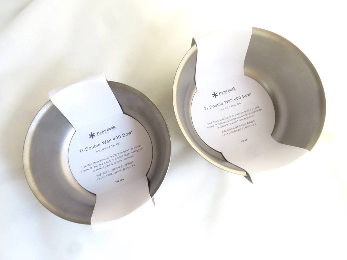 未使用 snow peak スノーピーク (TW-240) と (TW-241) Ti-Double Wall 400.600. Bowl チタンダブルボウル (各1個) 中空二重構造 チタニウム