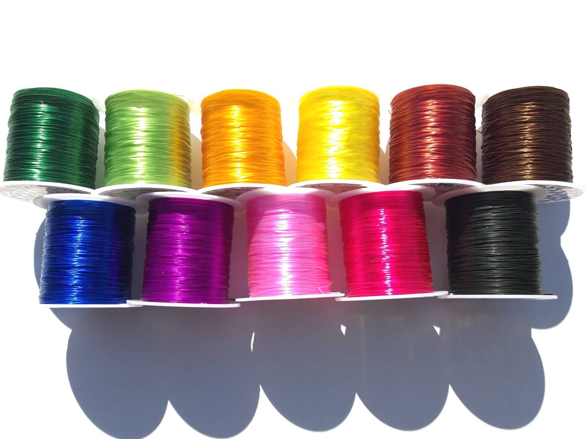 3枚目の写真をご覧ください。手元にこの種の扁円形の最高級、最耐久極品アクセサリー手工芸用100%0.8mm約25mシリコンゴムが合計11色あります。
