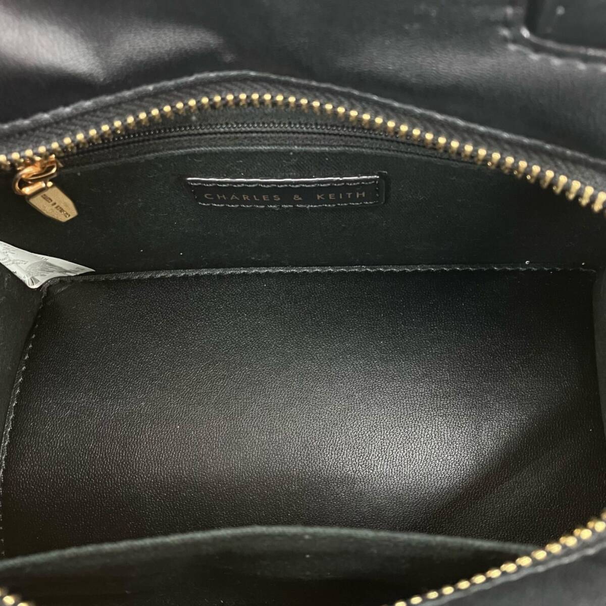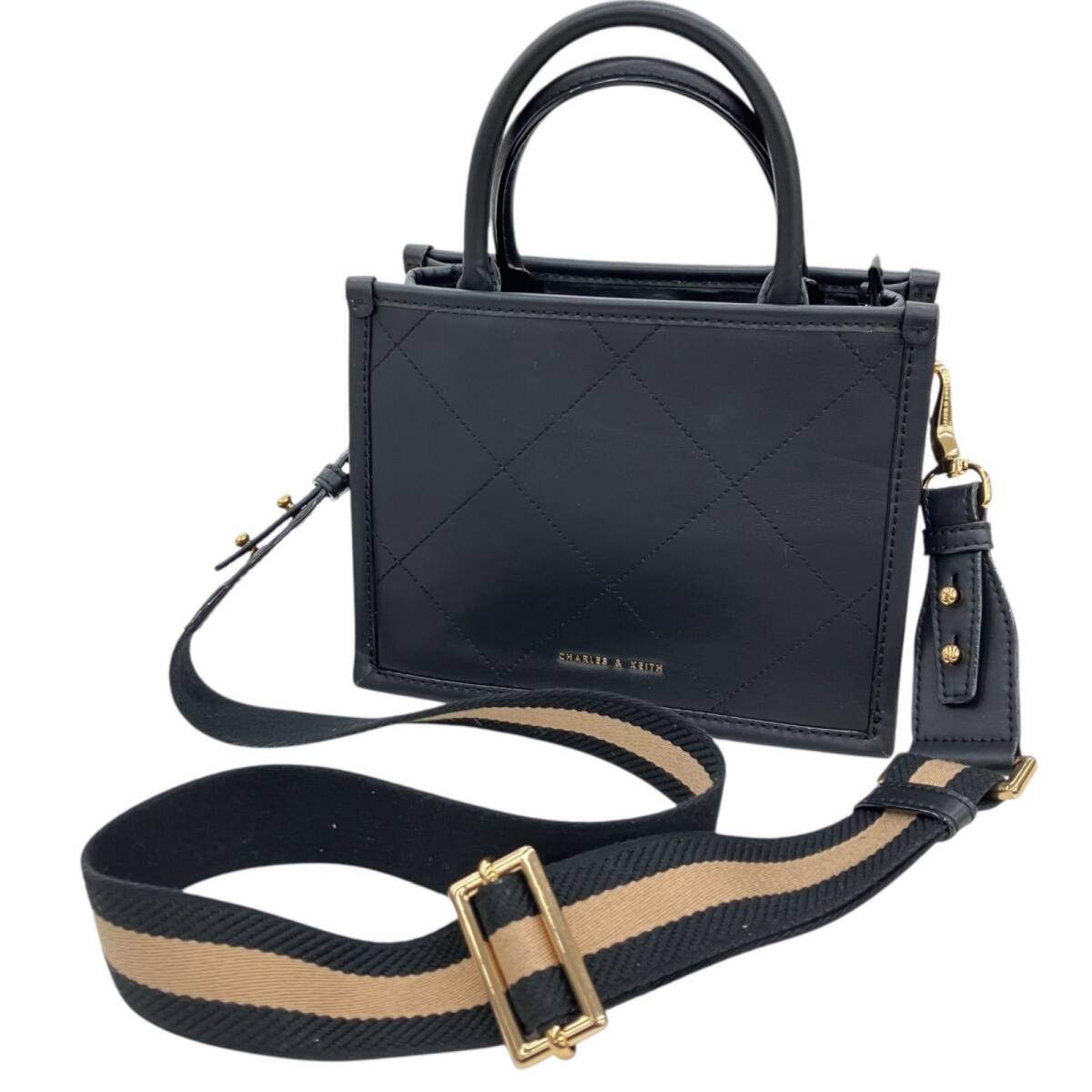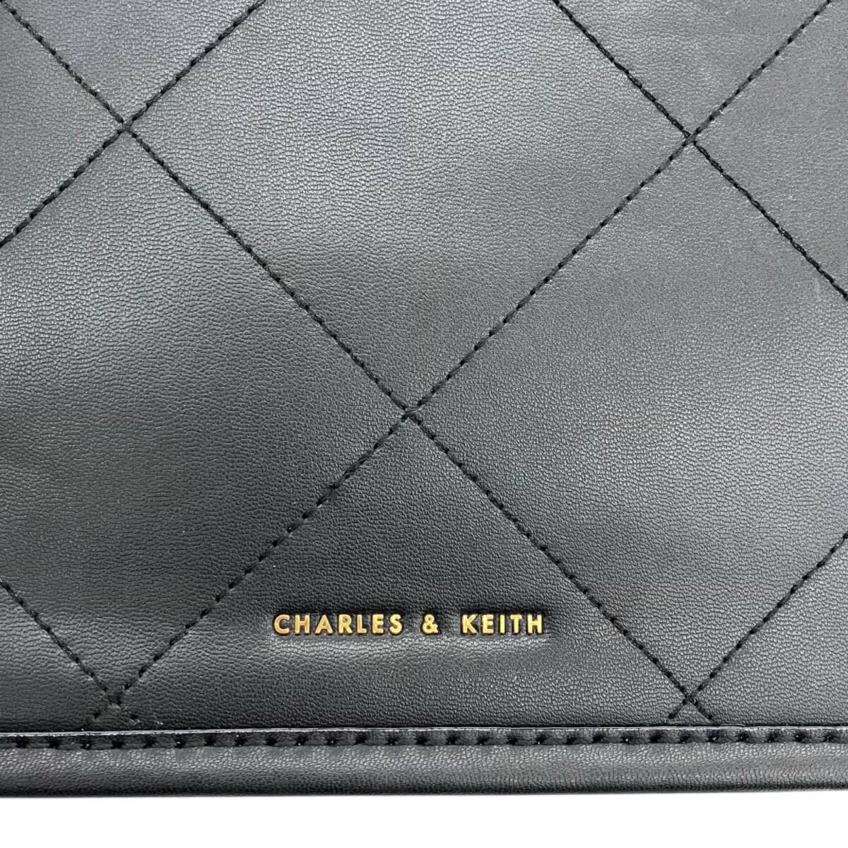 186001 Charles & Keith チャールズアンドキース キルトダブルハンドルトートバッグ セリア ブラック 2WAY レザー レディース