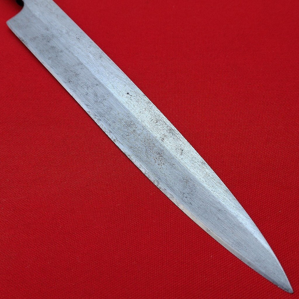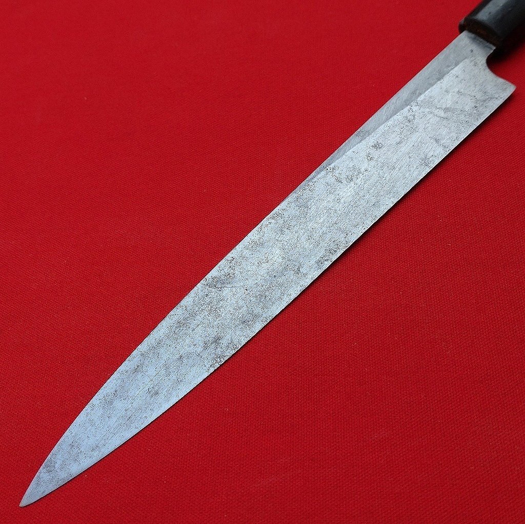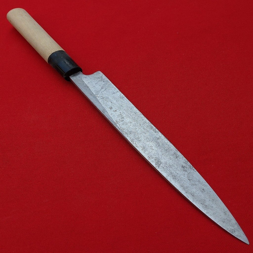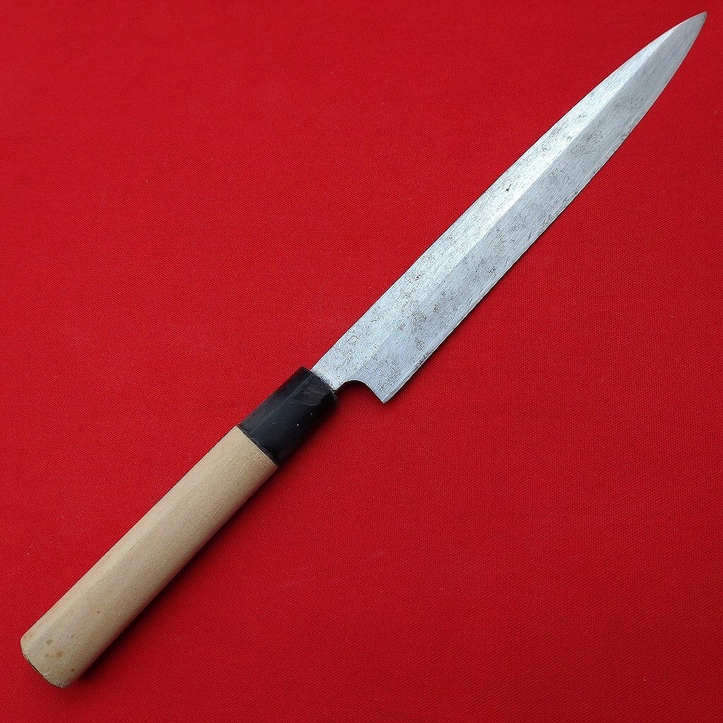 刺身包丁 在銘 刃長約193㎜ 峰厚最大約3.5㎜ 和包丁 片刃 柳刃包丁 正夫 栗型柄 調理器具 庖丁 刃物 日本製 【2406】