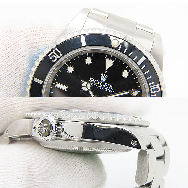 商品説明 | ロレックスの定番人気モデル「サブマリーナ14060 U番(1997年頃)」です。デイト表示のないシンプルなデザインで、夜光がオールトリチウムの綺麗な個体です。状態の良いものは年々数が減少しており、コレクションにも日常使いにも最適な1本となります。 |