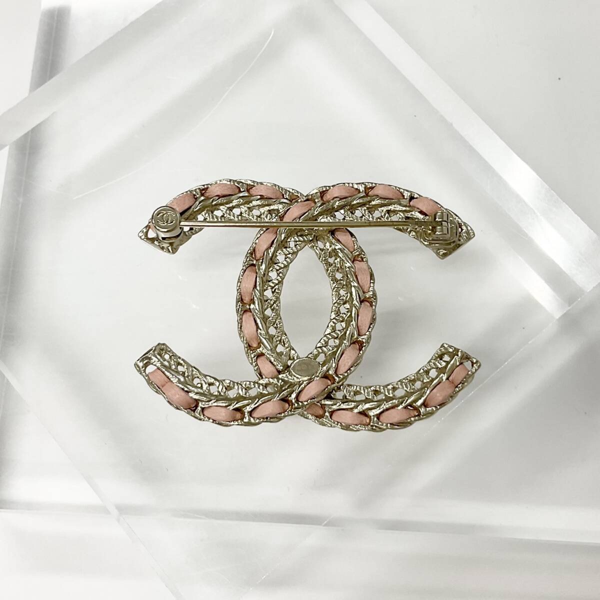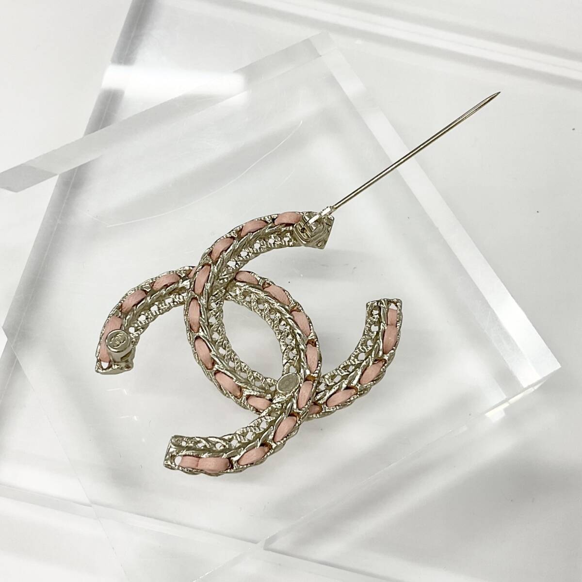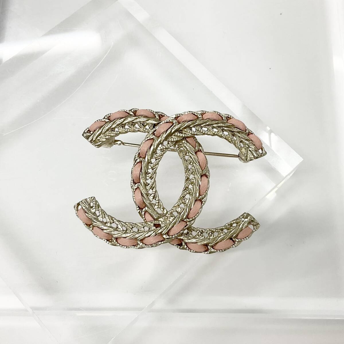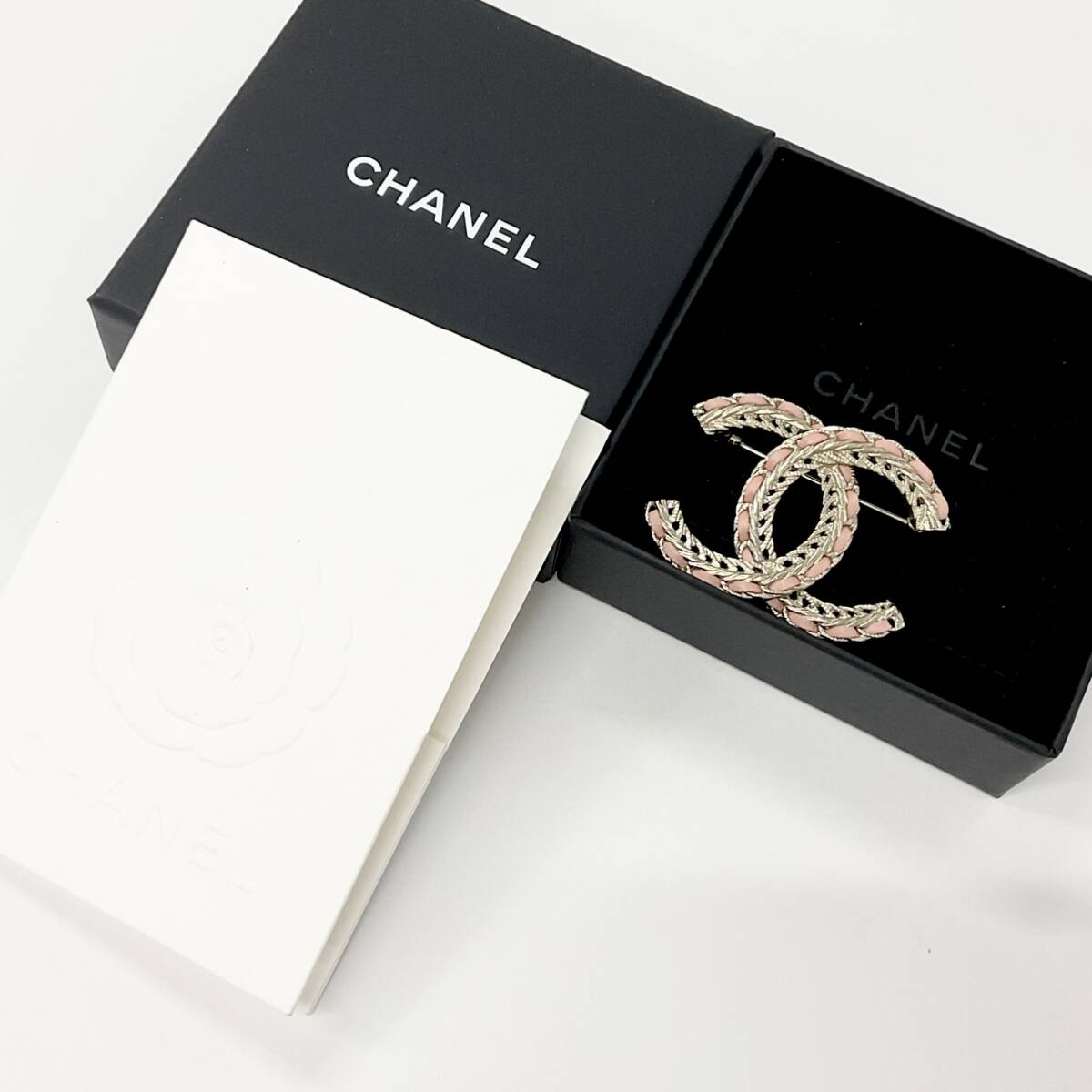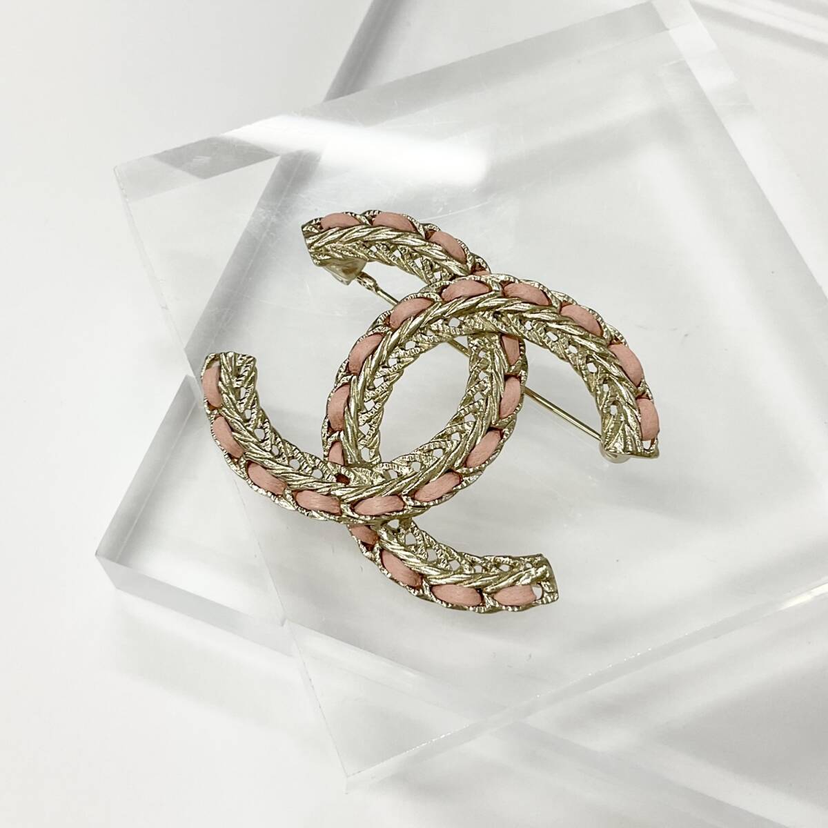 シャネル ブローチ ココマーク チェーン ラムスキン ゴールド ピンク