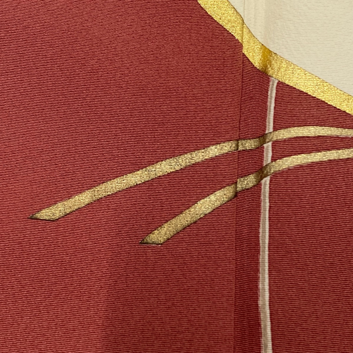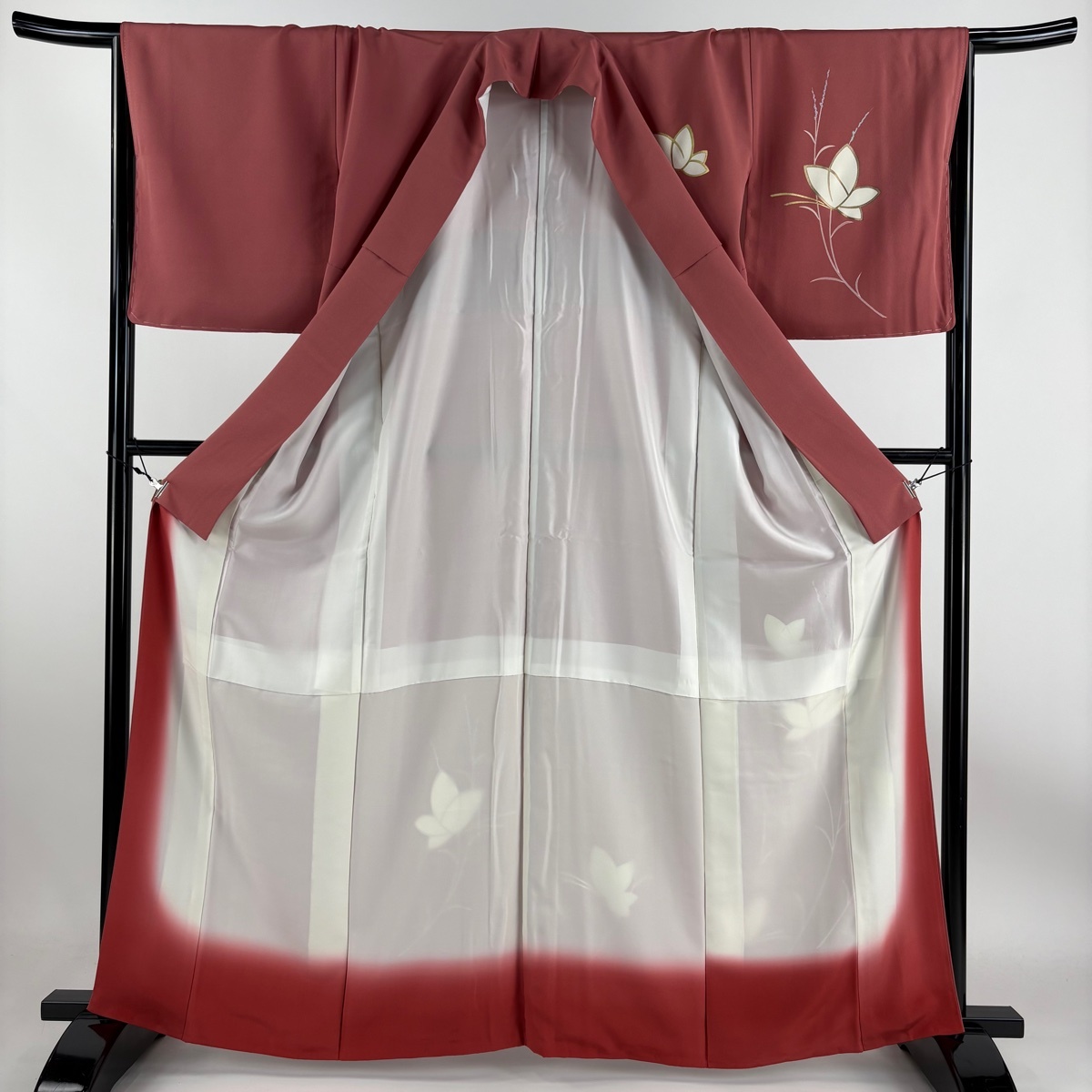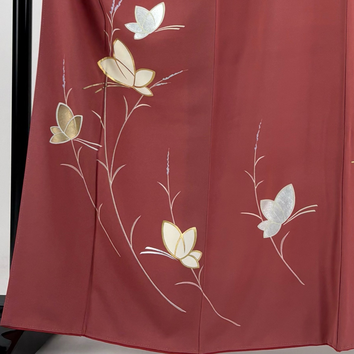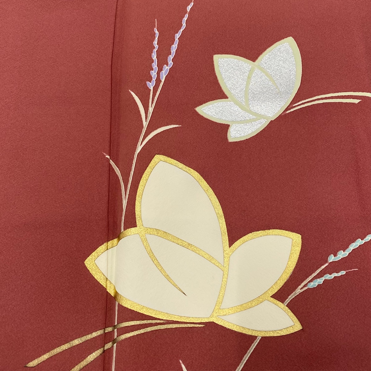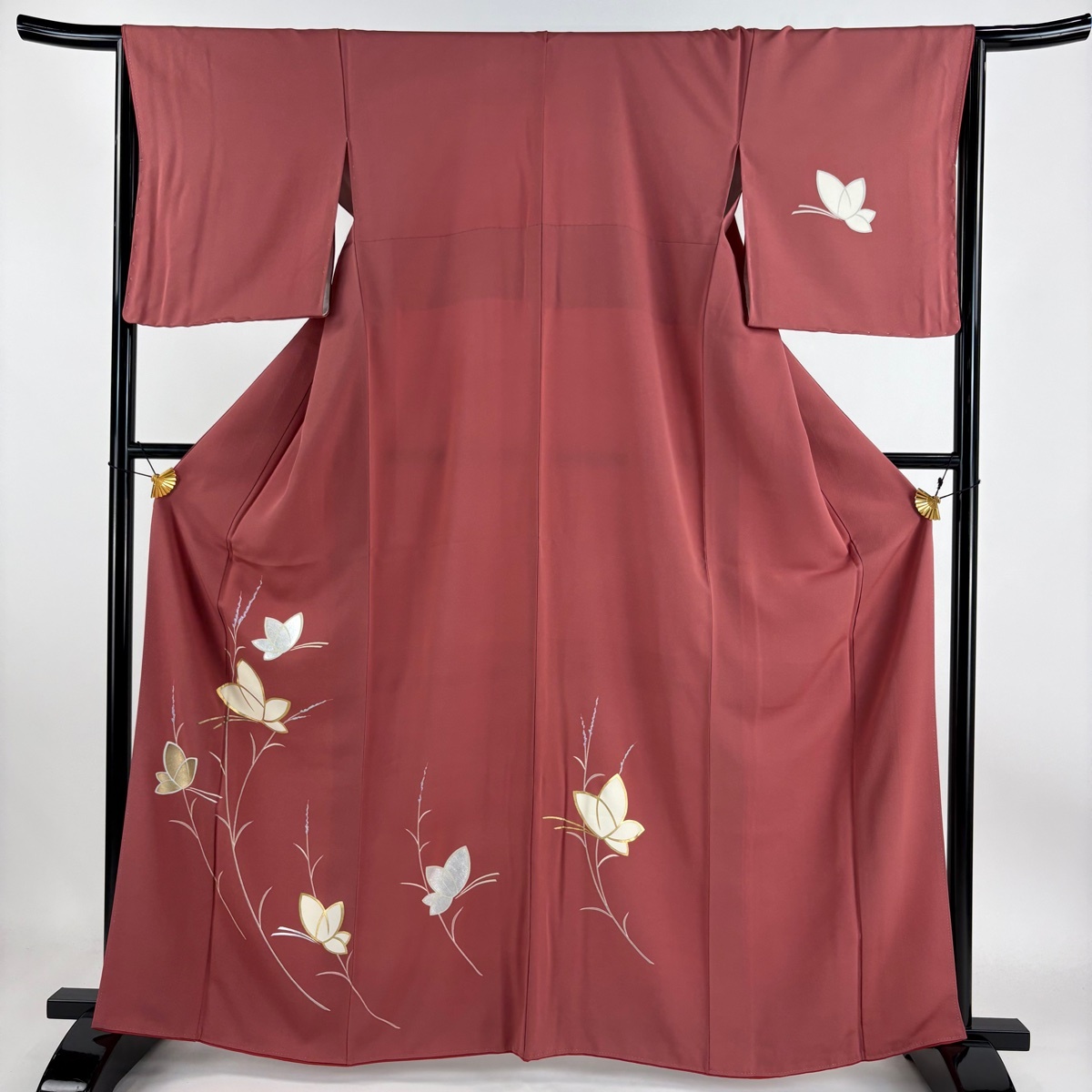 | 付下げ 秀品 蝶 草花 金彩 銀彩 濃ピンク 袷 身丈164 裄丈65 M 正絹 【中古】 |