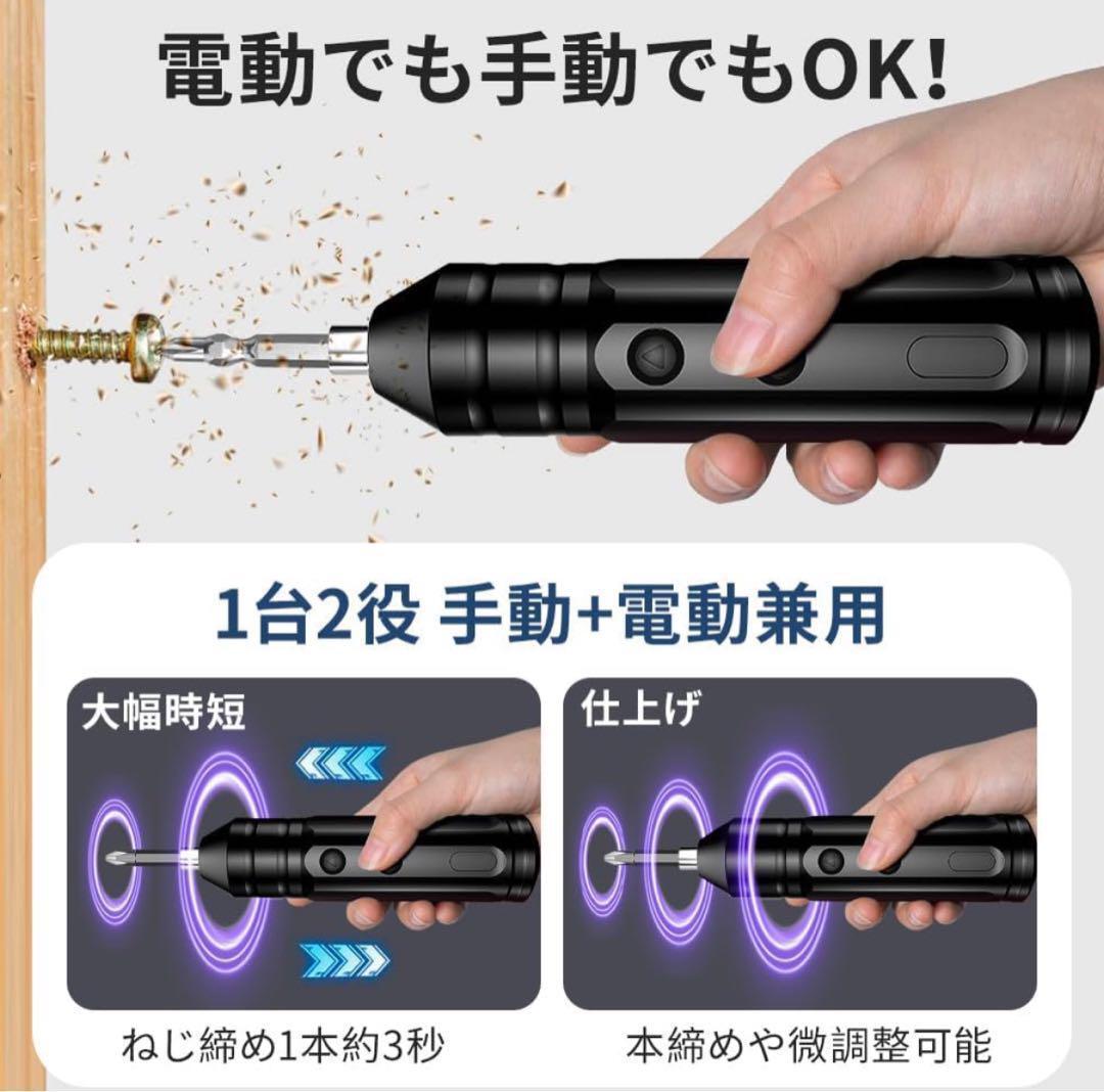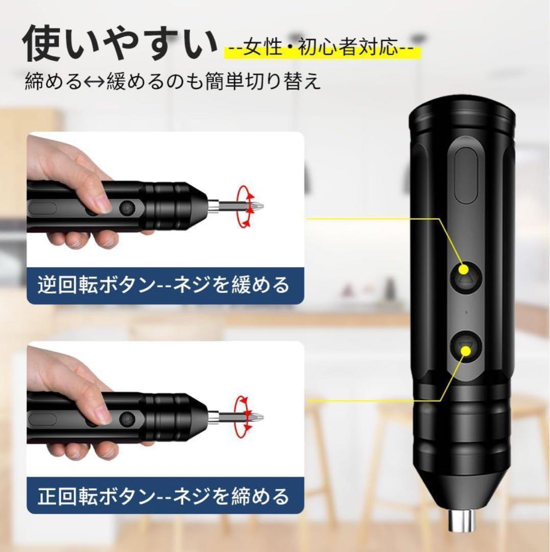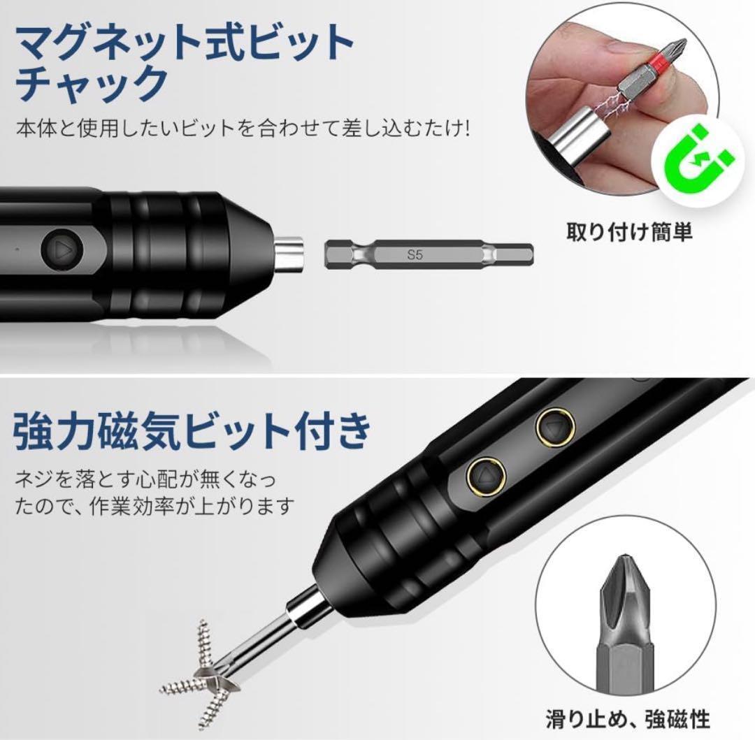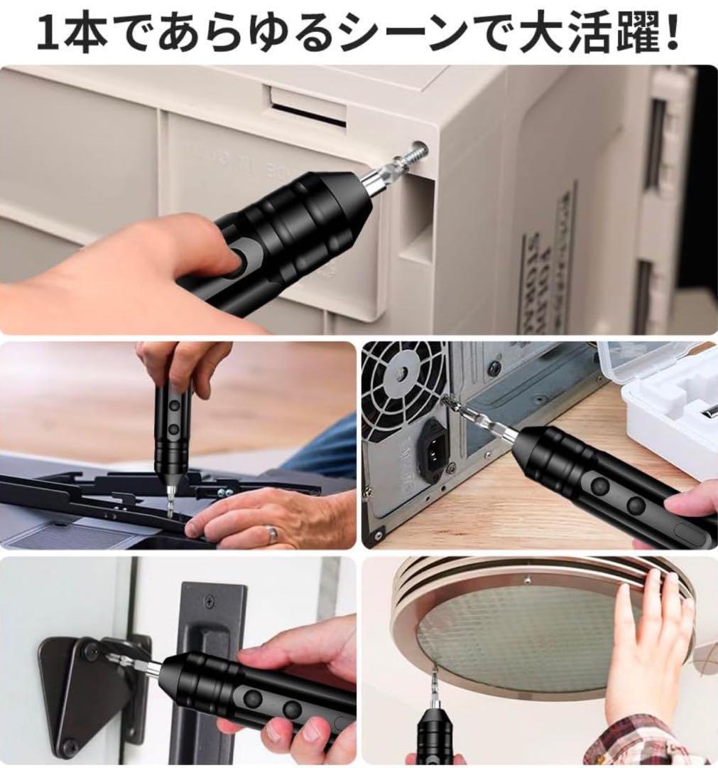 ビットの取り付けはマグネットシート取り付け方式です。6.35mmの磁気チャックで使用範囲が広く、取り付けも簡単です。使用中にドライバービットを交換したり、脱落したりする心配はありません。使いたいビットを磁気チャックに差し込むだけで使えます!USB充電式電動ドライバーはバッテリー交換不要で、繰り返し充電できます。コンピューターやパワーバンクの電源など、あらゆるマイクロUSBポートで充電できます。
