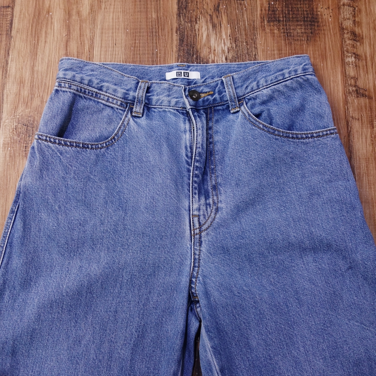 美品 ユニクロユー UNIQLO U カーブジーンズ レディース ハイウエスト テーパード 美シルエット 24インチ デニム パンツ ブルー QB12