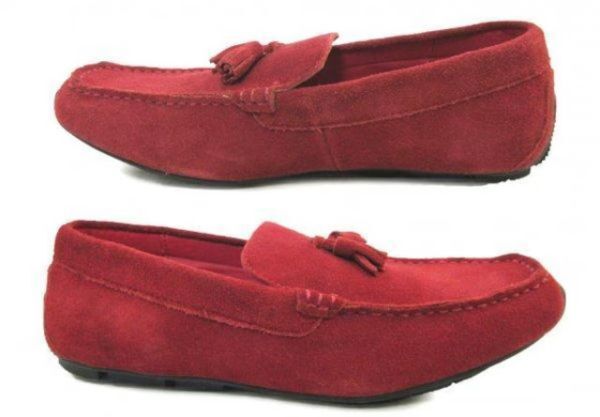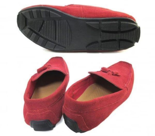 1円~L534新品Dedes本革タッセル/ドライビングスリッポン24.5㌢RED♂