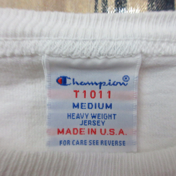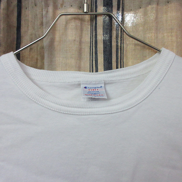 ●Champion Tシャツ 素材調達・糸の選定・縫製等、全行程をアメリカで行い、US製へのこだわりを受け継いだ、USコットンのドライタッチな感触や肌触りが最大の特徴。 左脇付近に汚れ、使用感はあります。 ●サイズ表記:MEDIUM ・着丈:68cm ・身幅:49cm ・袖丈:20cm ・肩幅:48cm ※素人採寸になりますので、多少の誤差はお許しください。