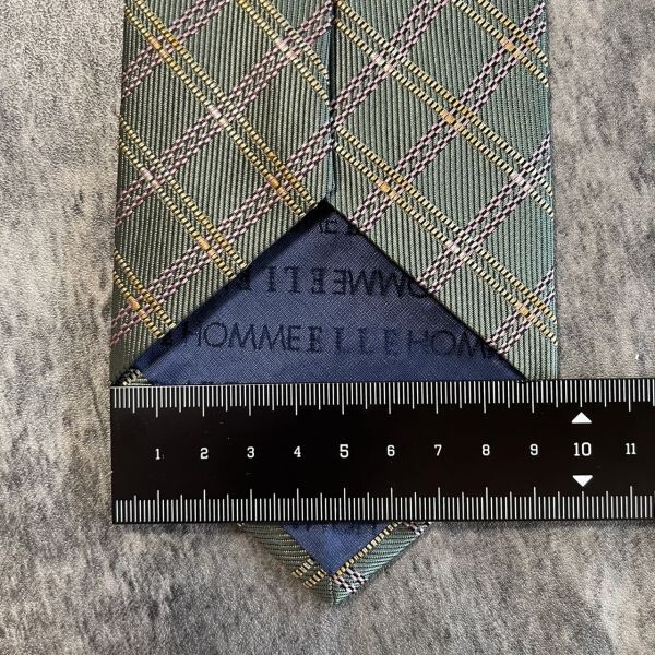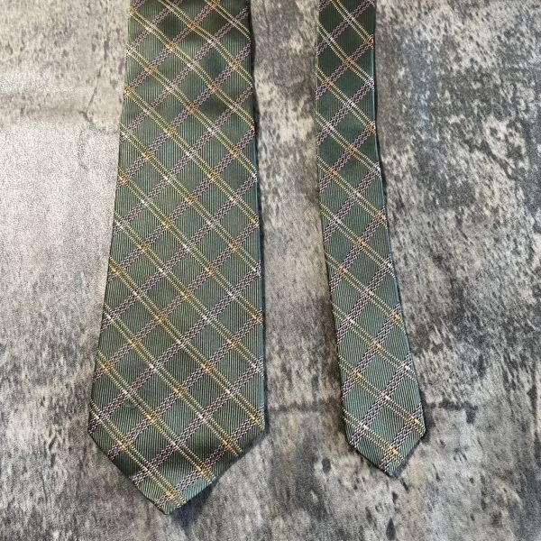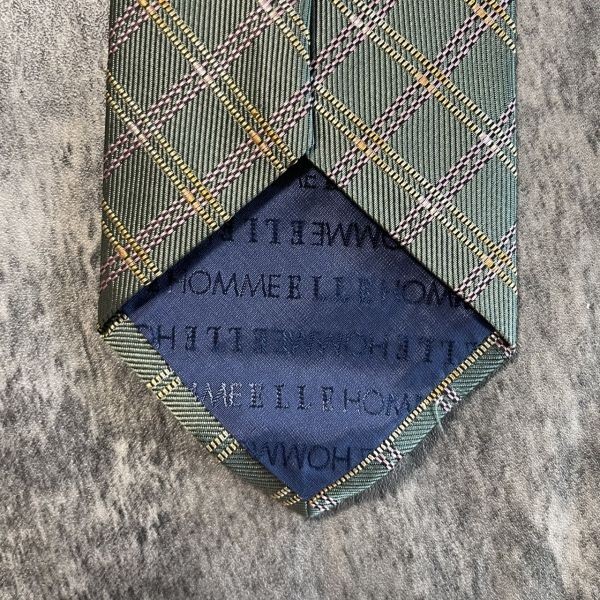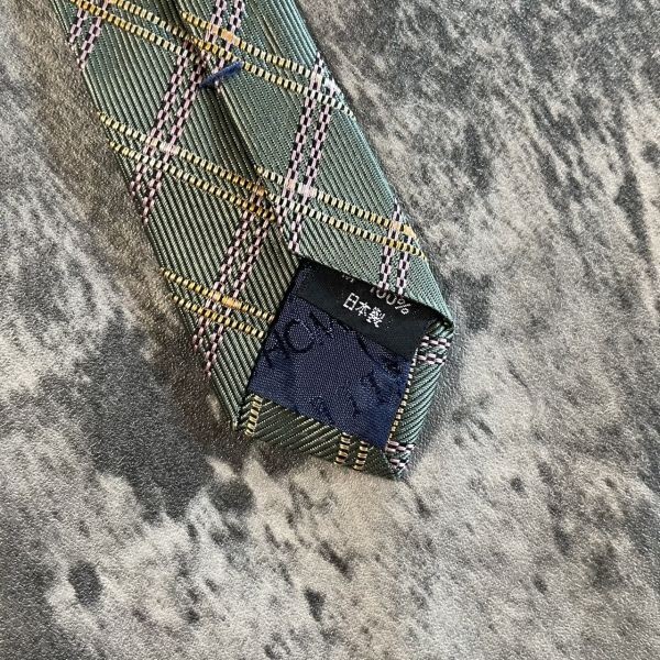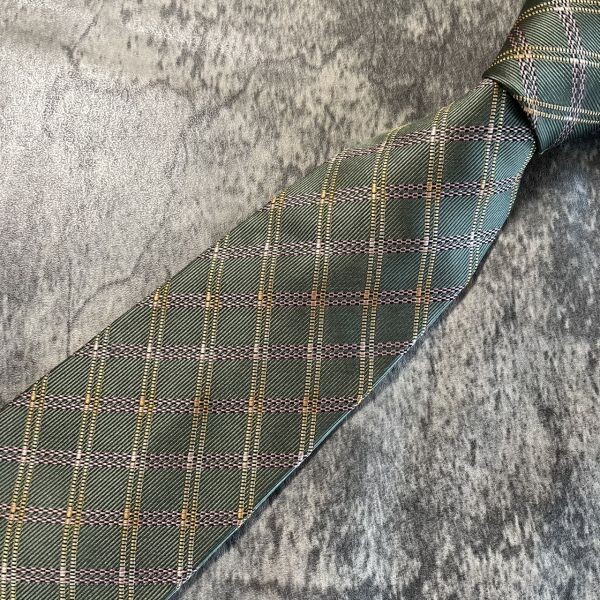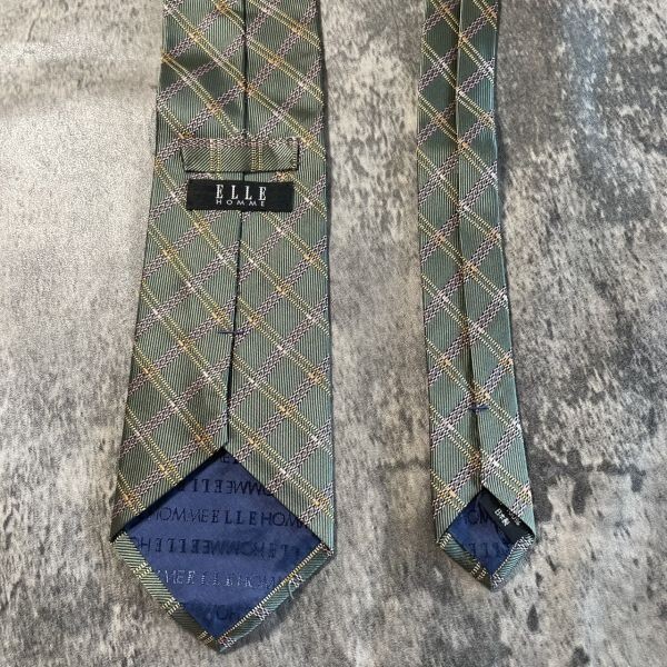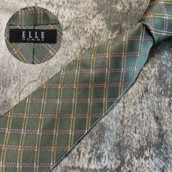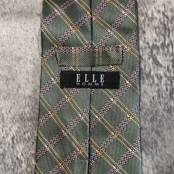 [KN290] ELLE グリーン チェック柄 シルク ネクタイ