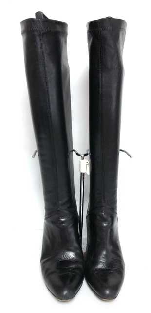 ☆二点以上で送料無料!C02 Cole Haan コールハーン イタリア製 レザー ロングブーツ 6.5B (23.5cm相当) 黒 ブラック 美脚 レディース