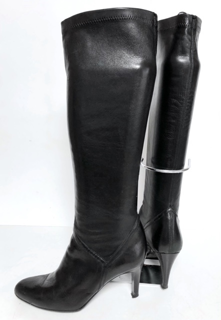 Cole Haan women's leather stretch long boots knee high black size 8.5 B made in Brazil
