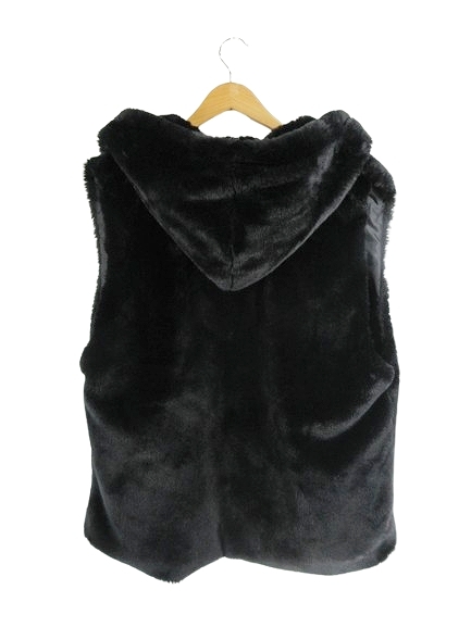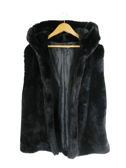 エレンカーレデュエ ELENCARE DUE エコファー フェイク ファー ベスト フード付き 前開き 無地 サイズF 黒 QQQ レディース