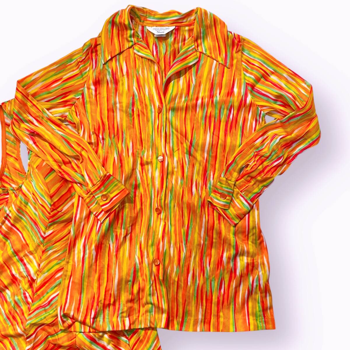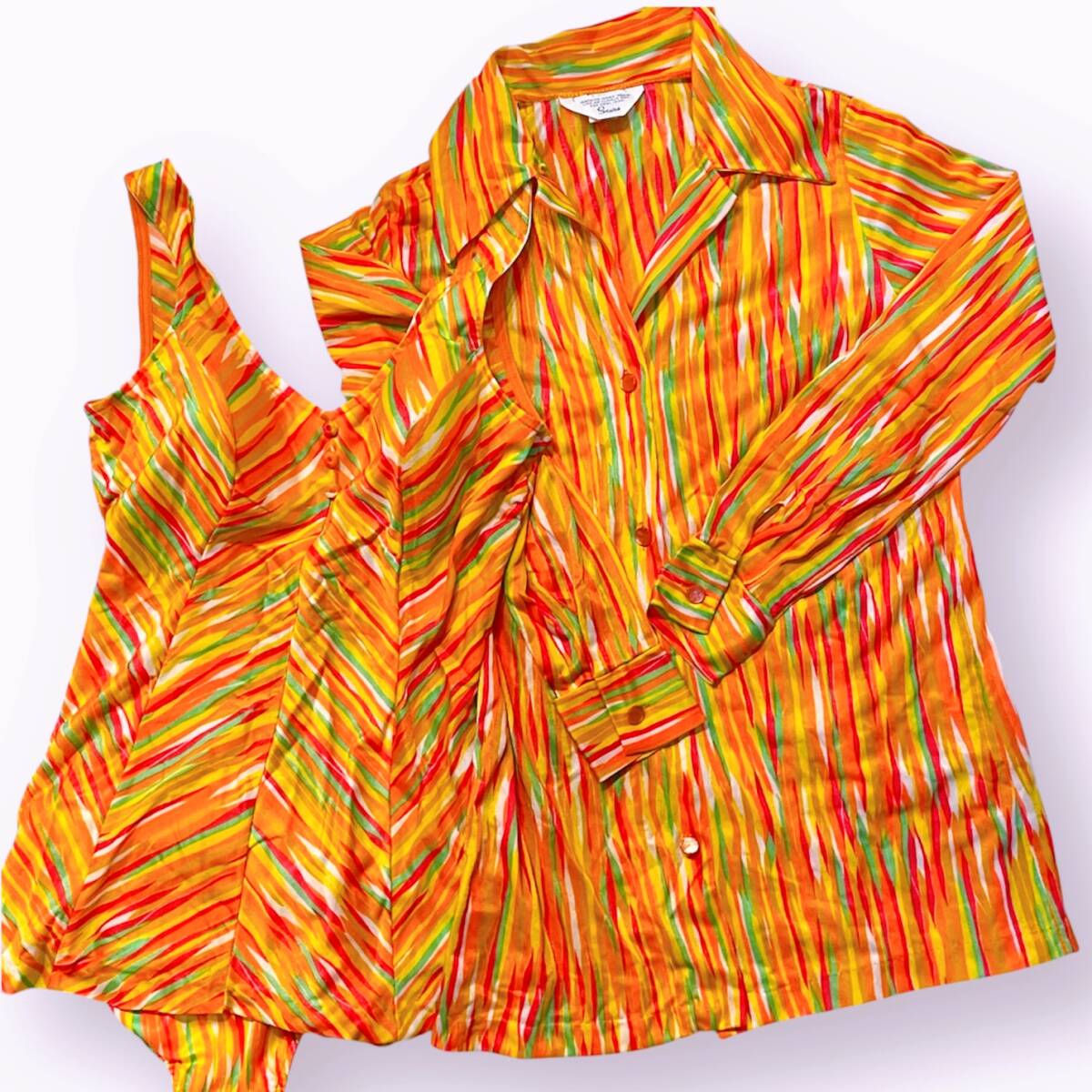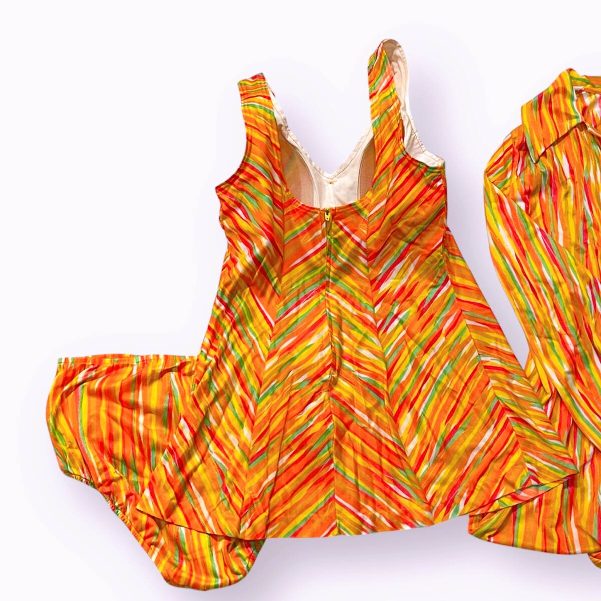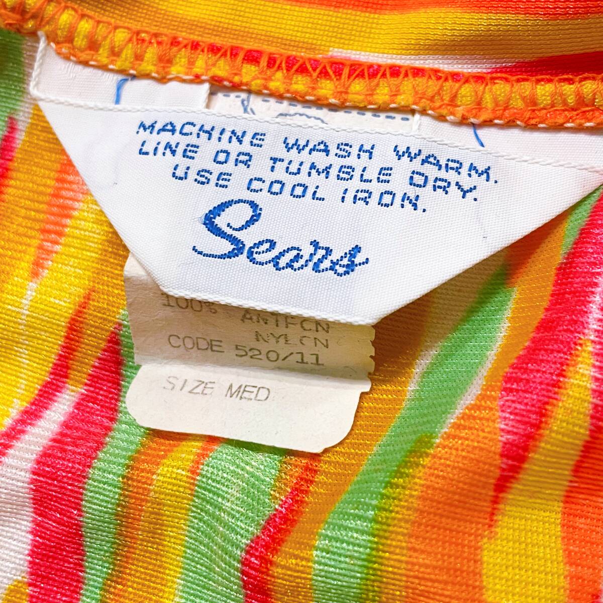 1960’s SEARS ヴィンテージ ネオンカラー 水着 セット!シアーズ ストライプ シャツ ワンピース ショーツ 幾何学模様 アメリカ ピンナップ
