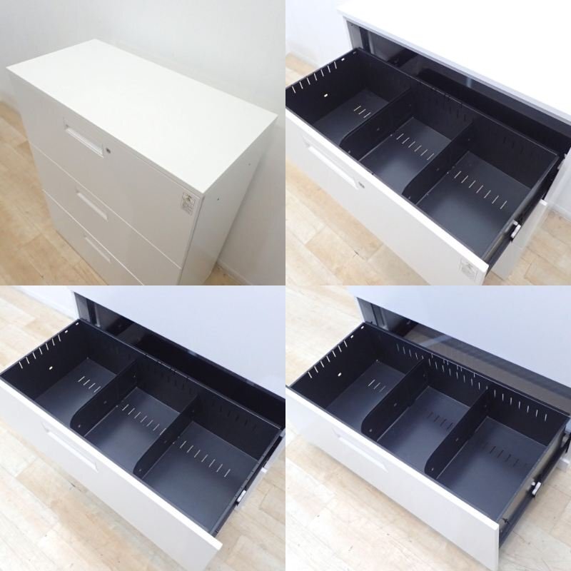 コクヨ エディアシリーズの3段ラテラルキャビネットです。 天板とベース付きのオプションフルセット! A4ボックスファイルが大量に収容でき、確認のしやすく資料棚としておすすめの引き出し式のキャビネット。 そして、そのシンプルで無駄のないデザインも人気の「EDIA(エディア)」シリーズ。 ぜひ、おしゃれな収納庫で見た目も効率性もアップさせてしまいましょう。 天板からベースまでホワイトで統一しているところもビジネスシーンで利用しやすい!ぜひご活用ください。 |
