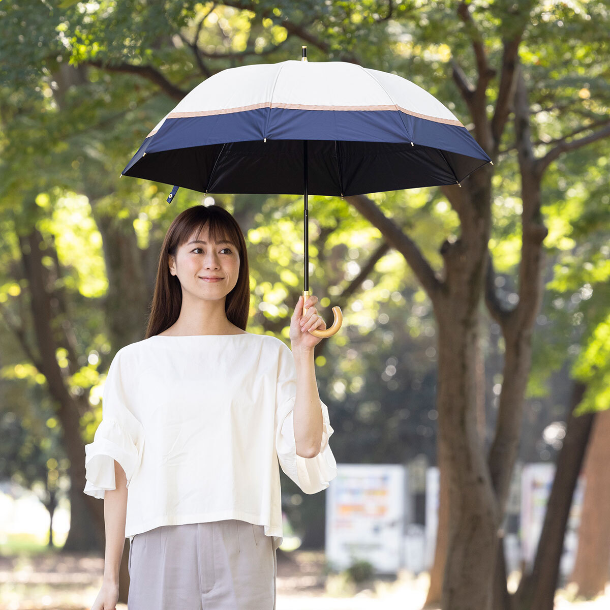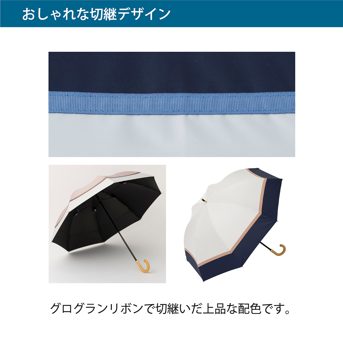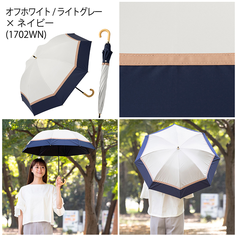 UV遮熱遮光コンパクト長傘 切継 (晴雨兼用) オフホワイト×ネイビー