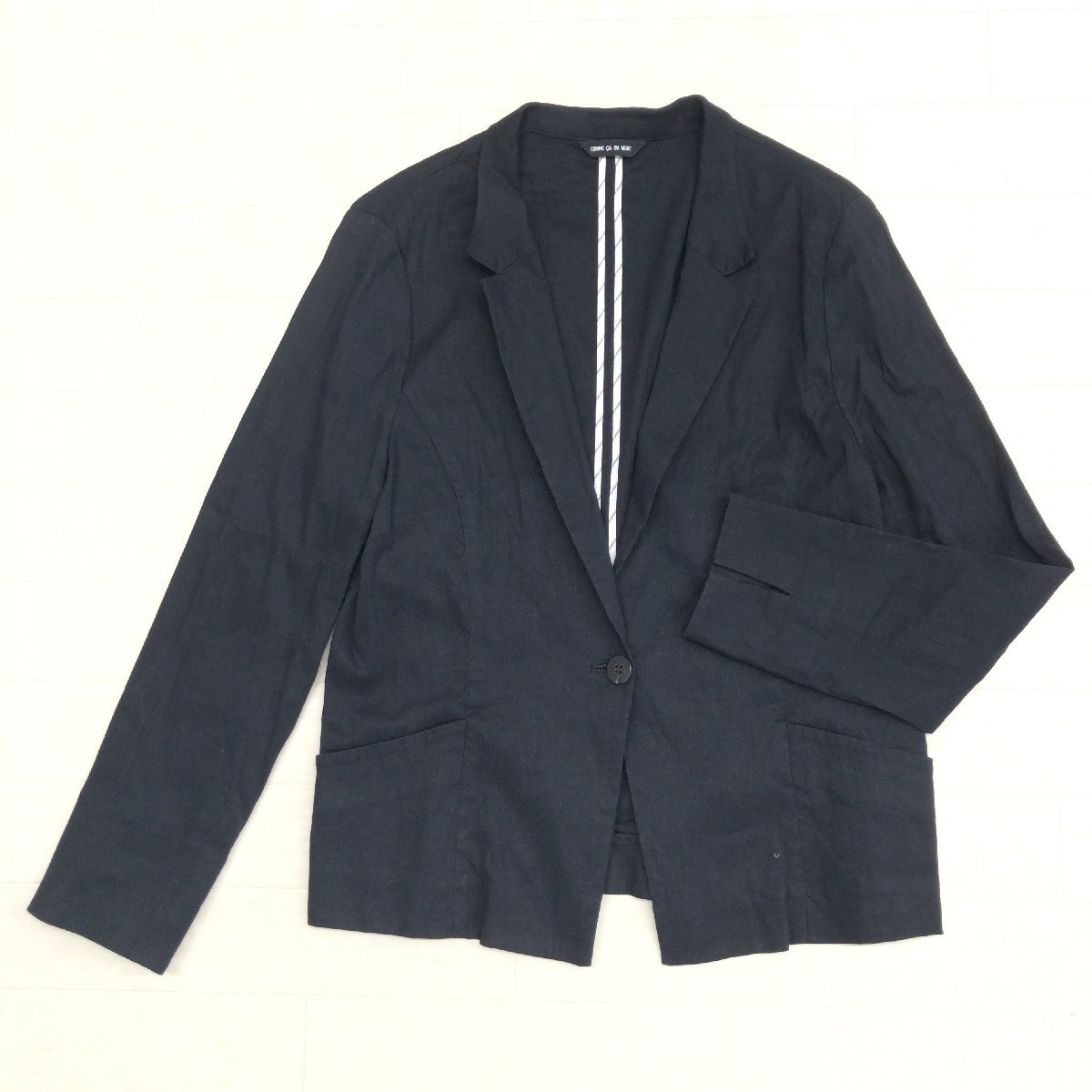 COMME CA DU MODE コムサデモード 麻 リネン コットン テーラードジャケット 17(3XL) 黒 ブラック 日本製 羽織り 4L ゆったり 大きい