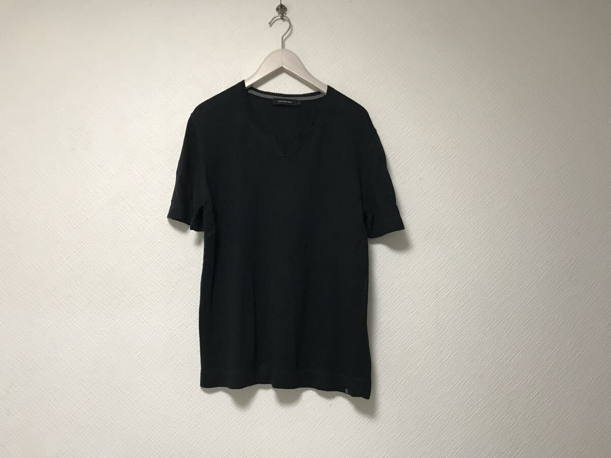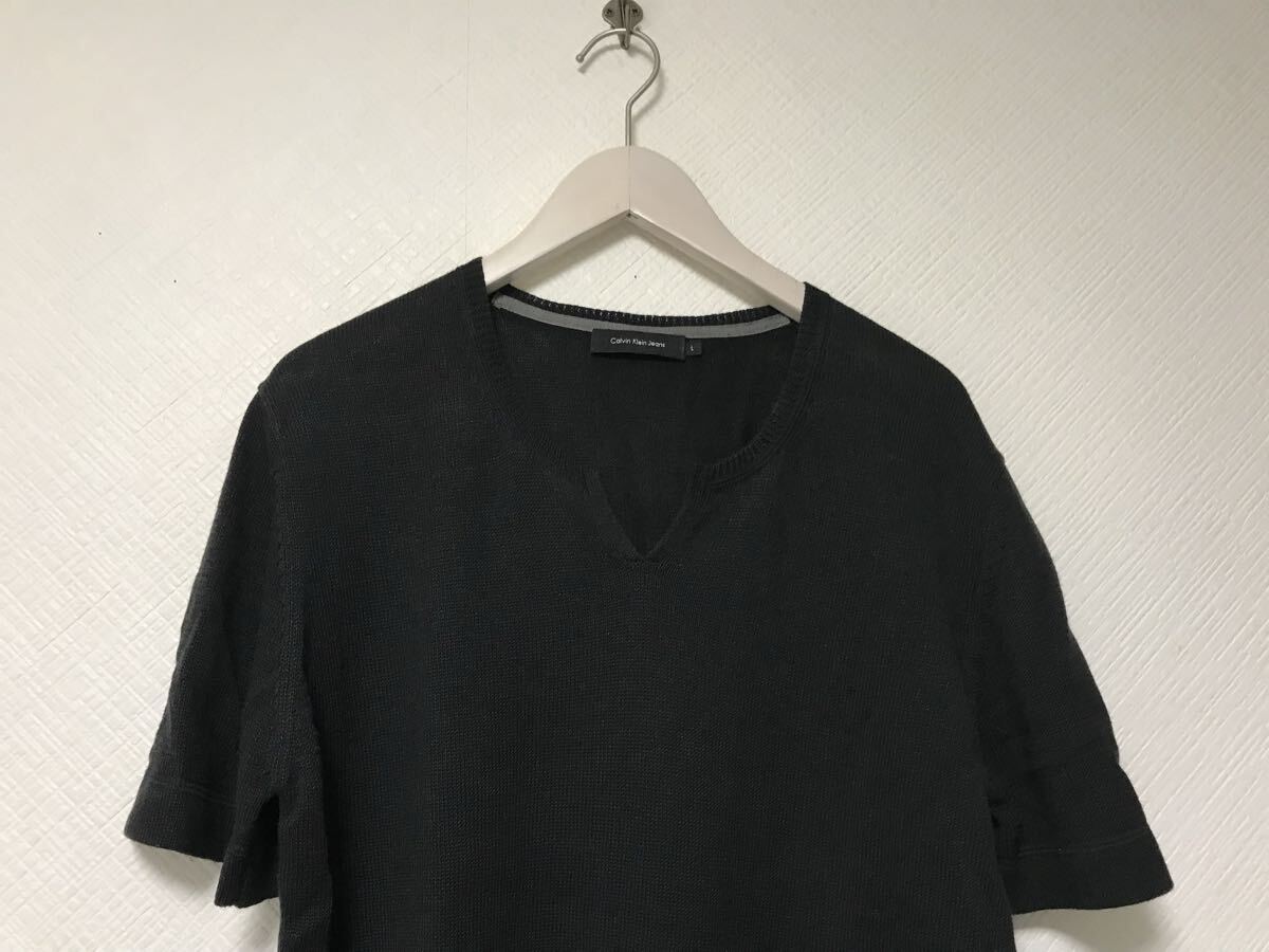 商品名:本物カルバンクラインジーンズCalvinKleinJeansリネン麻アクリルニットキーネック半袖Tシャツメンズサーフアメカジミリタリーストリートスケーターワークビジネススーツモードゴルフ黒ブラックL