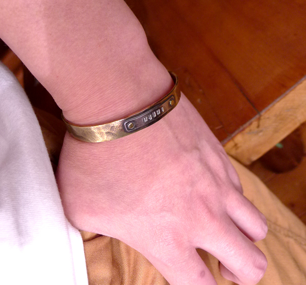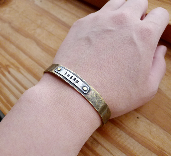 真鍮製バングル・シルバープレートに好きな文字を刻印できます