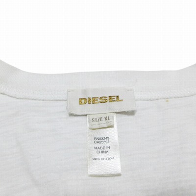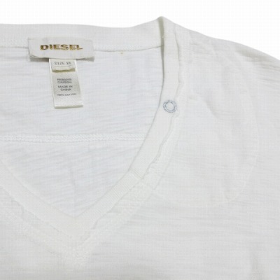 ディーゼル DIESEL 大きいサイズ Vネック Tシャツ カットソー 半袖 カットオフ ロゴ XL 白 ホワイト X メンズ