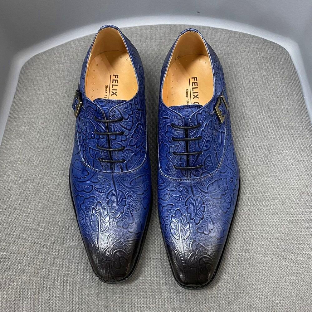 XX-OLY- F97-R51 青/職人手作り 40サイズ25.cm程度 【新品未使用】高品質 人気新品 メンズ シューズ ビジネスシューズ 職人手作り 本革