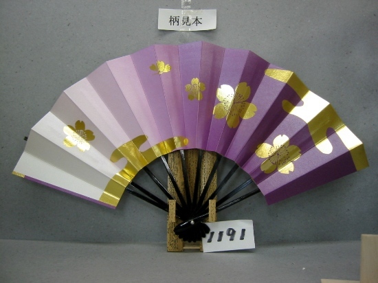 舞扇子 A1191 金箔桜雲 紫横ぼかしシルバー引き 【箱なし】